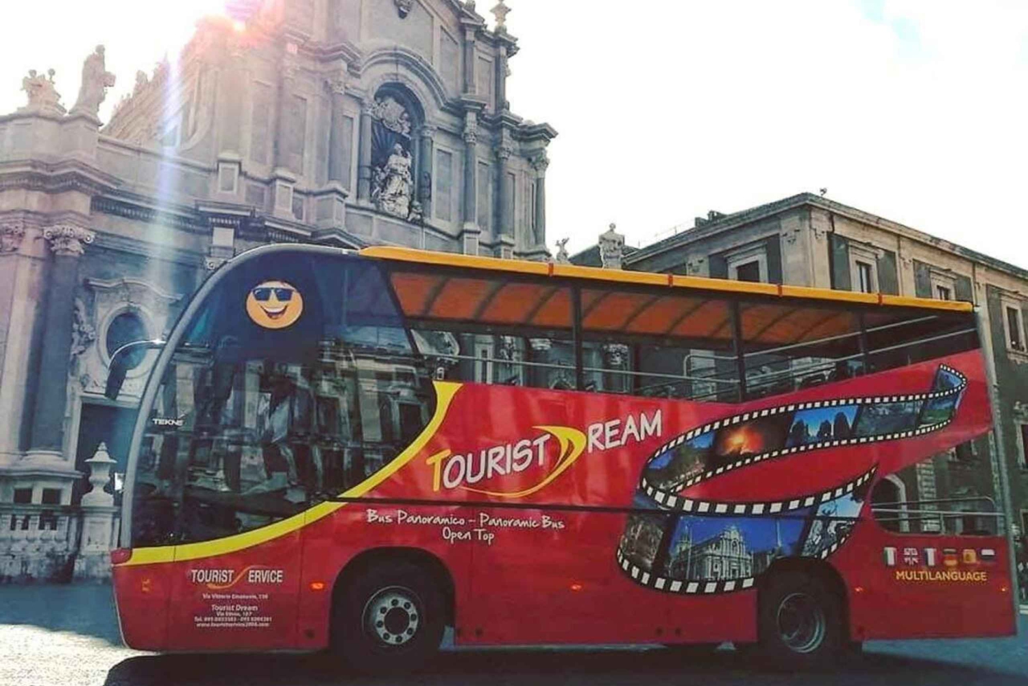 120 ReviewsBook en 24-timers hop på-/hop af-bus billet, og gå ombord på en panoramabus i Catania. Tag af sted fra byens historiske centrum og kør langs kysten til Acicastello og Acitrezza.