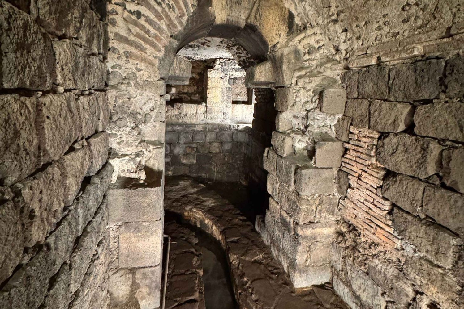Mød din ekspertguide, som venter på dig med en navneskilt, foran ruinerne af det majestætiske romerske sorte amfiteater. Her begynder din rejse på jagt efter byens underjordiske mysterier blandt ruiner af bomberamte kirker og forhistoriske huler, der gemmer på gamle religiøse steder. Find ud af, hvad der er gemt under gulvet! Følg guiden gennem det farverige bymarked, og stop her for en kort pause. Smag på lokal gademad og nyd atmosfæren på et overfyldt og støjende siciliansk friluftsmarked. Efter pausen kan du komme tilbage og opleve byens vidundere. Beundr pragtfuldheden af de store aristokratiske paladser og de senbarokke kirker på via Etnea, Catanias hovedgade, op til Piazza del Duomo med sin gådefulde elefant af sort lavasten. Gå på opdagelse i katedralens kælder og nyd derefter en typisk afskedsdrink i kiosken sammen med guiden.Includes