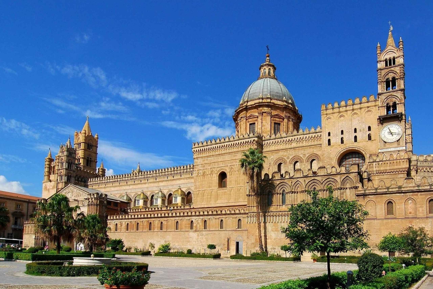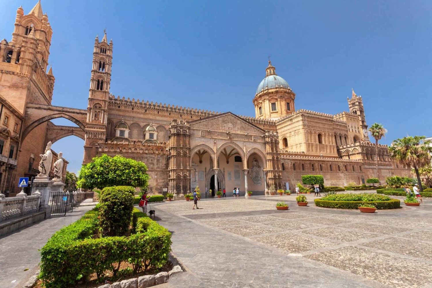 Træd ind i Palermos pulserende hjerte med en unik byvandring, der blander historie, legender og lokal charme. Din rejse begynder ombord på den panoramiske 'Palermo City Sightseeing'-bus fra Via Emerico Amari. Fra majestætiske katedraler til travle gader – du udforsker byens sjæl til fods, guidet af en lokal guide og en flersproget audioguide fyldt med fascinerende historier og kuriositeter, som kun ægte palermitanere kender til. Turen starter med en panoramisk transport fra Via Emerico Amari til det kongelige palads, magtens sæde siden den normanniske æra. Derfra besøger du den fantastiske katedral i Palermo og går derefter langs Corso Vittorio Emanuele, hvor du opdager historiske steder og betagende arkitektur. Ved 'Quattro Canti' står du ved byens symbolske korsvej, før du fortsætter langs den pulserende Via Maqueda. Turen slutter på Piazza Ruggero Settimo, en kort gåtur fra startstedet. Når du ankommer til mødestedet, får du en unik kode til at downloade den officielle app med audioguide. Lydguiden fås på italiensk, engelsk, fransk, spansk og tysk, og dit foretrukne sprog kan vælges, når du bekræfter kuponen. Appen virker på både Android- og iOS-enheder, og hver kode er gyldig til en enkelt download på én smartphone.Includes