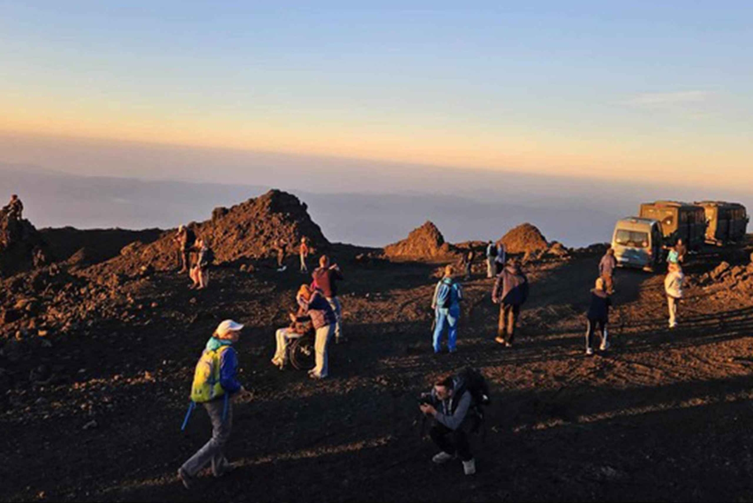 Begib dich auf eine unvergessliche Sunset-Expedition zum Gipfelbereich des Ätna und benutze spezielle Geländewagen, die für Höhenaufstiege auf der Nordseite zugelassen sind. Von 1.800 Metern über dem Meeresspiegel bei Piano Provenzana fährst du zum Vulkanologischen Observatorium auf 3.000 Metern Höhe. Zu Beginn des Aufstiegs kannst du einen Blick auf die von der Lava verschlungenen Gebäude werfen und anschließend die markanten 'Knopflochkrater' besichtigen, die während des Ausbruchs am 27. Oktober 2002 entstanden sind. Das Trekking beginnt inmitten der Lavaströme und explosiven Überreste dieses bemerkenswerten Ausbruchs auf etwa 1.900 Metern Höhe. Ein mechanischer Transfer führt zu den Kratern 'Umberto und Margherita' auf etwa 2.380 Metern, wo eine kurze Wanderung entlang der Kraterränder möglich ist. Weiter geht es zum vulkanologischen Observatorium am Pizzi Deneri. Nach dem Verlassen des Geländewagens führt ein kurzer 15-minütiger Fußmarsch in Begleitung von Guides zum Gipfel des Pizzi Deneri auf 3.000 Metern Höhe. Nach etwa 2,5 Stunden kehrst du mit dem Geländewagen zum Ausgangspunkt zurück und beendest damit diese fesselnde Reise.Includes