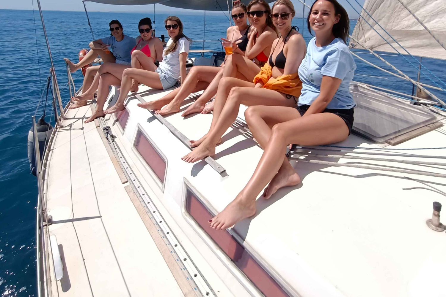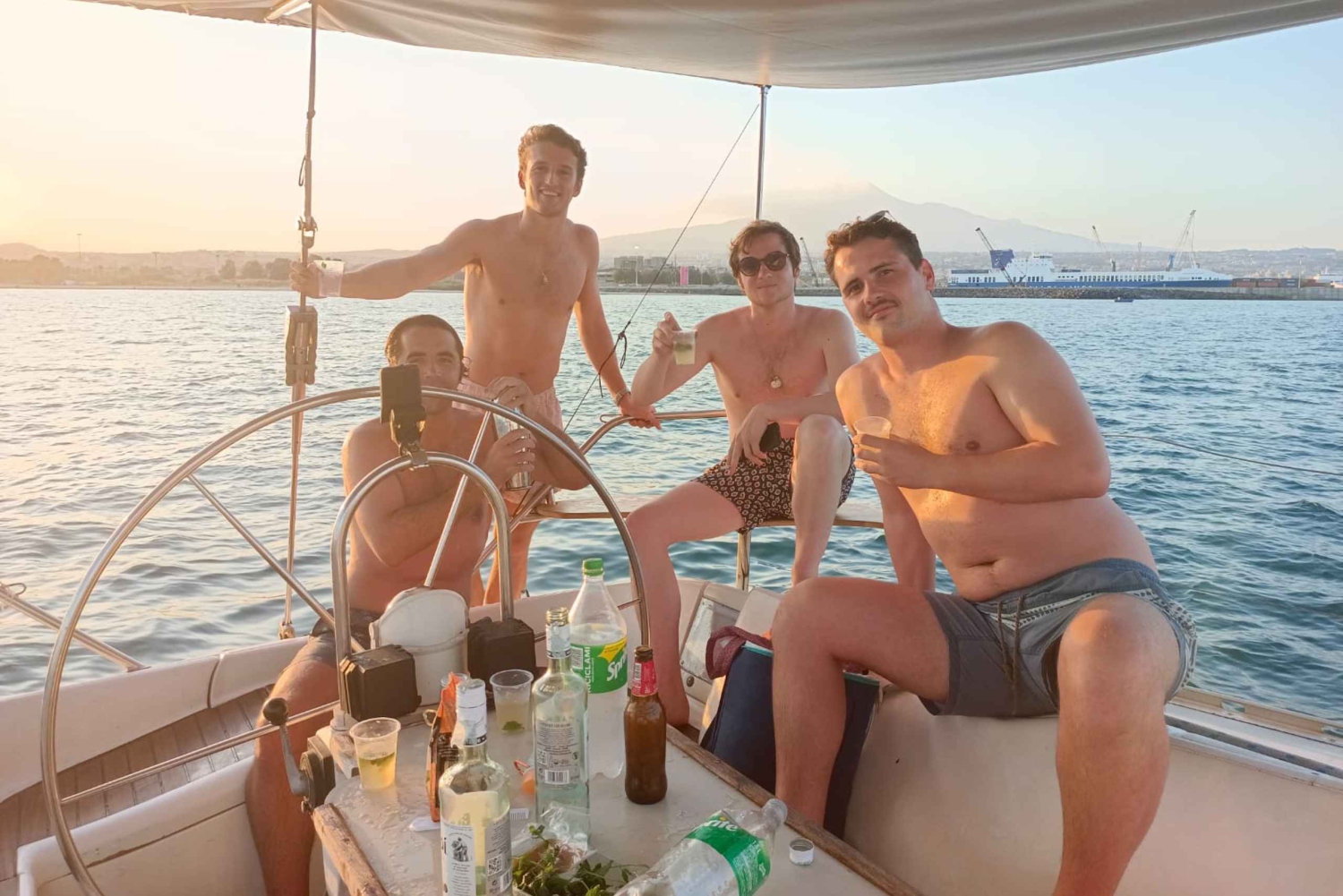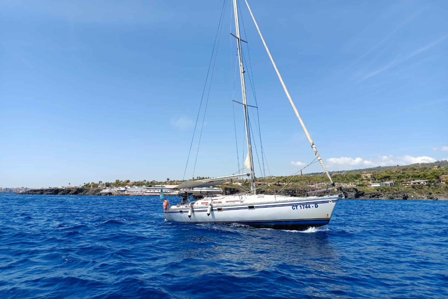 Abfahrt aus dem Hafen von Catania (im Stadtzentrum). Kurze Einweisung in die Navigation, die uns erwartet, und Beginn der Abfahrtsmanöver. Die Segel werden geöffnet und die Fahrt entlang der Küste beginnt, unterbrochen von mehreren Stopps, um das Meer zu erkunden und einzutauchen. Wir werden typisch sizilianische Gerichte und Snacks mit Sekt probieren. (Obst, Gourmet-Sandwiches, Schorle, herzhafte Snacks und Softdrinks). Auf der Rückfahrt kannst du, wenn du möchtest, das Segelboot unter Anleitung des Skippers sicher manövrieren.Includes