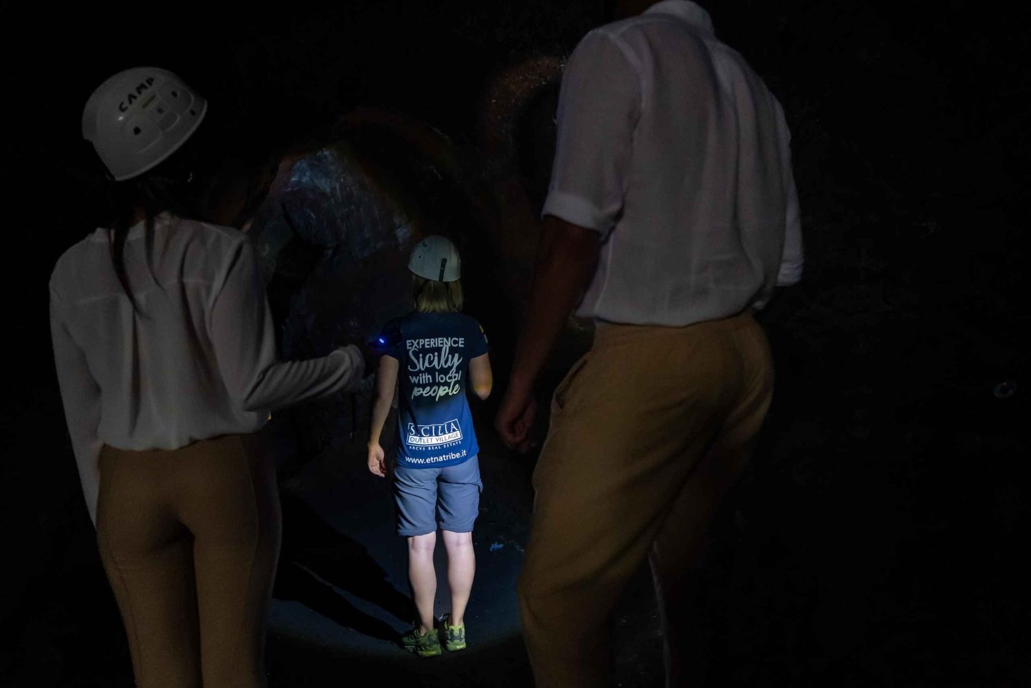 Abholung in Taormina und Giardini Naxos, von deiner Unterkunft oder in der Nähe Mehrsprachiger Reiseführer Trekkingschuhe (auf Anfrage) Ausrüstung für den Besuch der Lavahöhle Verkostung lokaler ProdukteEasy cancellation