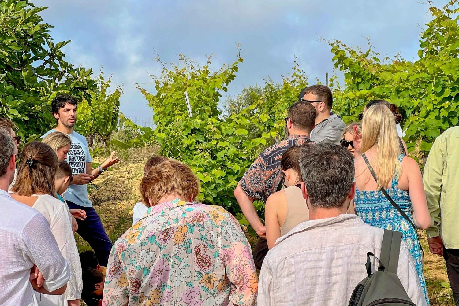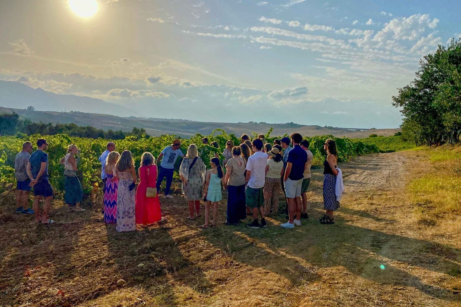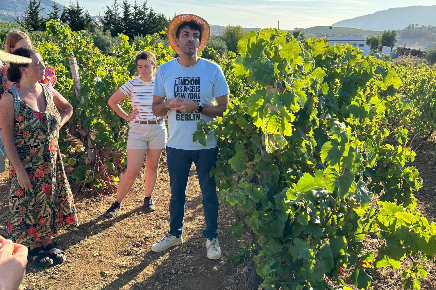 Descubre más sobre el vino natural, el aceite de oliva y la miel en una excursión de degustación en Alcamo. Pasea por los viñedos, prueba algunos vinos y acompáñalos con comida local. Reúnete con tu guía en la granja de Alcamo, donde empezarás hablando de la producción de vino, aceite de oliva y miel mientras das un paseo por el viñedo, que culminará con una visita al colmenar. Tras el paseo, tendrás la oportunidad de catar algunos vinos y hablar sobre el arte de la elaboración natural del vino. Marida sus vinos con algunos deliciosos aperitivos como pan, aceite de oliva, tapenade, aceitunas, queso, mermeladas y fruta local.Includes