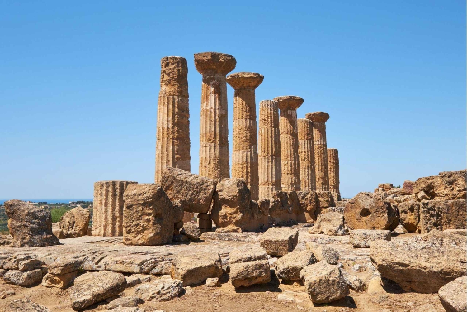 Hoy a las 7:45, prepárate en el punto de recogida para encontrarte con nuestro conductor y salir hacia el interior de Sicilia para llegar a Agrigento y ver el Valle de los Templos: tour a pie independiente de dos horas con audioguía por el Valle de los Templos, un importante Patrimonio de la Humanidad de la UNESCO que incluye el Templo de Hera, el Templo de la Concordia, el Templo de Hércules y el Templo de Zeus. Según la leyenda, Agrigento fue fundada por Dédalo y su hijo Ícaro después de que huyeran de Creta «por aire». Históricamente, sin embargo, sus orígenes se remontan al 582 a.C., cuando fue fundada por colonos rodio-cretenses de la vecina Gela, que llamaron a su ciudad Akragas, por el río cercano. Aumentó rápidamente en tamaño, importancia y fuerza militar bajo el mandato de Faláride, el primer tirano, y más tarde bajo el de Terón, que extendió su camino por el norte de Sicilia hasta Himera. Por la tarde, seguimos hacia Piazza Armerina para disfrutar de una visita independiente a los increíbles suelos de mosaicos de la villa romana del Casale, que forma parte del Patrimonio de la UNESCO. Construida en el siglo IV d. C., la villa cayó en el olvido y no fue hasta el siglo XX cuando las excavaciones revelaron todo el edificio. Es el mejor ejemplo de una villa romana de lujo (unos 3500 metros cuadrados de mosaicos en el suelo) y probablemente fue la residencia de un miembro de la clase alta del Imperio romano. Los mosaicos descubiertos aquí son muy apreciados por los estudiosos de la antigüedad. La visita al interior de la villa romana se hará de forma independiente. Cada habitación tiene paneles informativos. Luego seguimos hacia Siracusa (llegada estimada a las 18:45, dependiendo del tráfico) donde termina el servicio. Ten en cuenta que si el tour no llega a tener al menos dos participantes, no se realizará.Includes