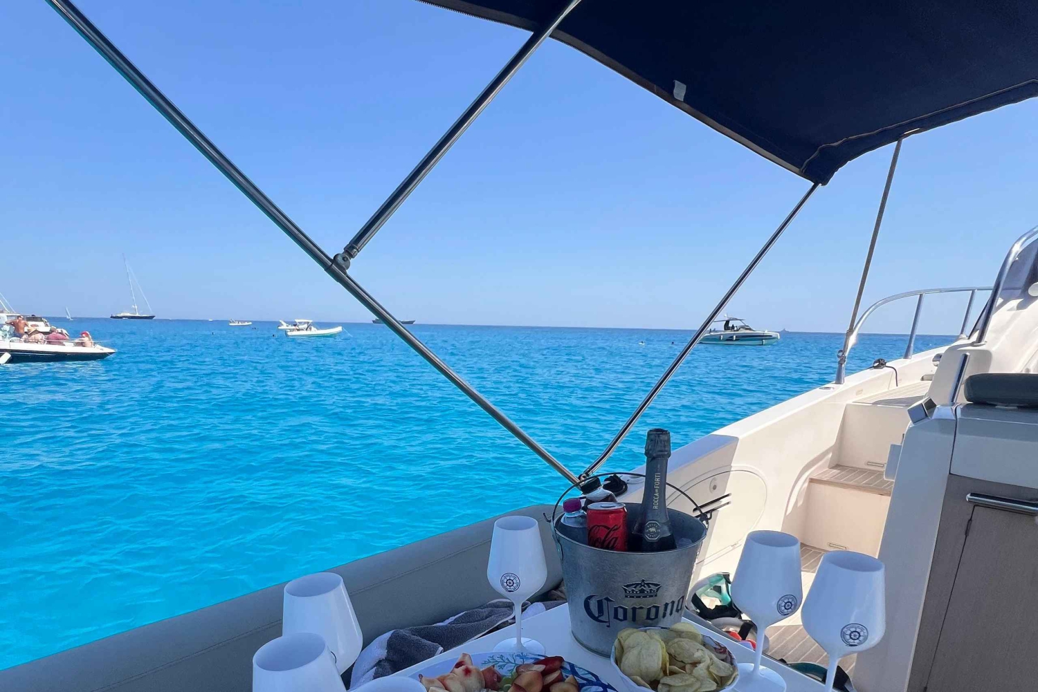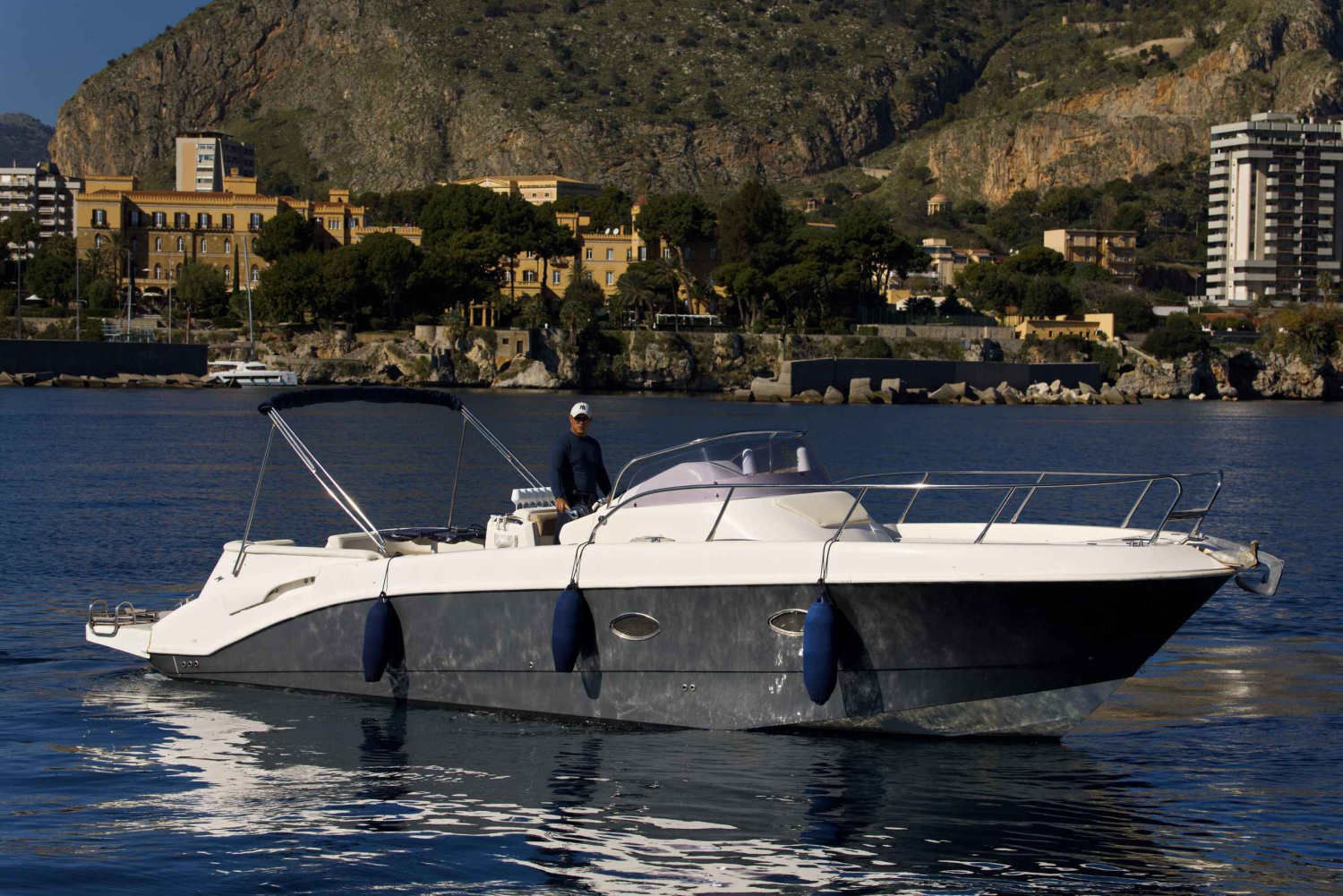 Siéntate y disfruta de un paseo en barco privado con un aperitivo en Palermo. Navega hacia la Reserva Natural de Capo Gallo, nada y practica snorkel en el Golfo de Mondello o toma el sol en la terraza escuchando música. Alquila esta embarcación impecablemente cuidada para disfrutar de un día con amigos o en familia. Cita en Palermo, a pocos minutos del centro de la ciudad. Desde aquí es posible llegar a algunos de los lugares más bellos del Mediterráneo. En el exterior, la embarcación es muy cómoda y tiene una gran bañera y amplias zonas para tomar el sol en proa y popa. A bordo encontrarás todas las comodidades necesarias para pasar un día de relax total. En el interior dispondrás de un dormitorio y un cuarto de baño. Previa solicitud, es posible organizar fines de semana en San Vito Lo Capo, Riserva dello Zingaro, Favignana, Cefalú y las Islas Eolias. Sólo tienes que pedirlo y la tripulación estará encantada de satisfacer todas tus necesidades. Sube a bordo para explorar las aguas cristalinas de la costa más bella del sur de Italia.Includes