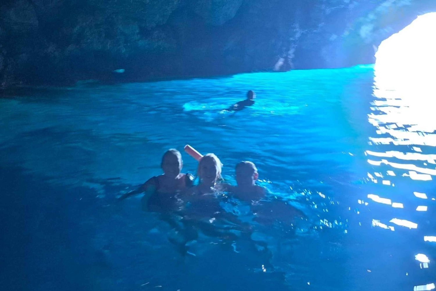 Descubre la belleza del mar siciliano con nuestro emocionante tour en barco. Nuestros barcos están equipados con todas las comodidades y son nuevos. Saldremos del Molo Trapezoidale, situado en el centro de Palermo. Navegaremos a lo largo de la costa de Palermo, donde podrás admirar las aguas cristalinas y los impresionantes panoramas. Haremos una parada en la característica playa de Vergine Maria, donde podrás bañarte en sus aguas cristalinas. Continuaremos navegando hacia el promontorio y llegaremos a Mondello, donde haremos una parada para bañarnos y disfrutar de un aperitivo típico siciliano, fruta fresca y prosecco. La navegación continuará a lo largo del promontorio de la reserva natural de Capo Gallo, donde podrás admirar las impresionantes vistas que conducen a la Cueva del Aceite, una cueva única creada por la fuerza incesante de las olas del mar a la que solo se puede acceder nadando. Regresaremos y haremos una parada para admirar y fotografiar la Cueva de la Reina, un lugar fascinante y misterioso, además de encontraros frente al hotel más lujoso de Palermo con vistas al mar, el Hotel Villa Igea, un destino muy popular entre muchos VIP internacionales.Includes