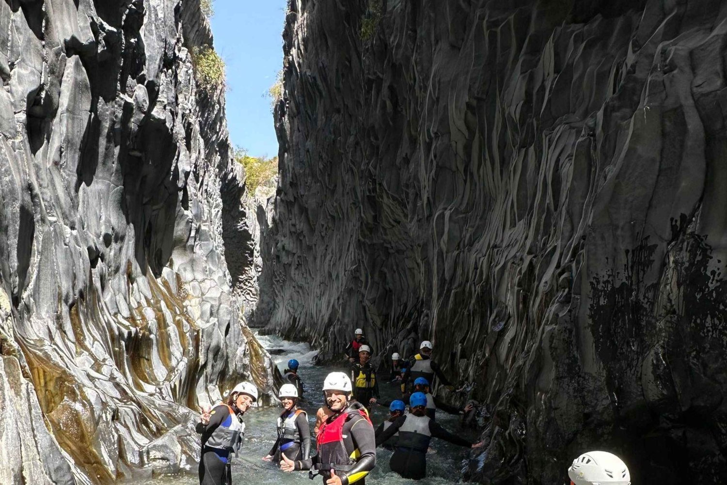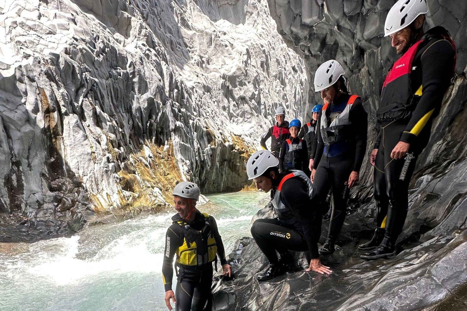 Participa en la increíble aventura del body rafting por el río Alcántara con ropa de buceo y todo el equipo necesario. Disfruta de una actividad física en un entorno idílico al cuidado de un guía local. Comienza tu aventura en la Gole dell'Alcantara. Aquí tu guía te equipará con ropa de buceo, casco y chaqueta, todo el equipo necesario para el bodyrafting. Empieza a caminar por las aguas cristalinas del río, situado en el valle de Alcántara. Sigue a tu guía experto por el sendero y explora las paredes rocosas de origen volcánico. Contempla el cañón natural de las Gargantas de Alcántara desde dentro. Camina por el interior de los pasos de agua, nada y salta al agua. Disfruta de un refrescante baño y comienza a hacer bodyraft hasta llegar de nuevo al valle. Aprovecha al máximo un itinerario que se extiende 2,5 km y te familiariza con pasadizos ocultos tanto en el agua como en tierra.Includes