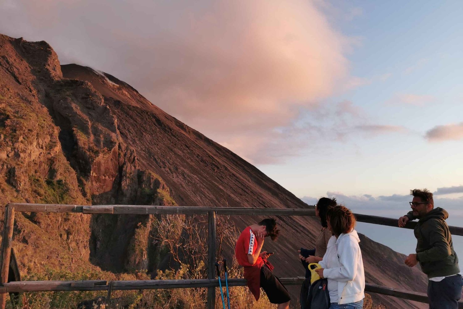 • The sunset trekking tour finish late in the evening, which means that you will need to stay on Stromboli Island overnight as there are no return ferry boats late in the evening This tour will stop at 400 meters due to the closure of the summit craters You can rent hiking shoes on spot At the discretion of the guide, the excursions may undergo variations or be interrupted if weather conditions, environmental causes, or possible volcanic risk represent any source of danger. The guide is entitled to stop the excursion for any reason that could compromise the safety and, therefore, the physical integrity of an individual or of the entire group