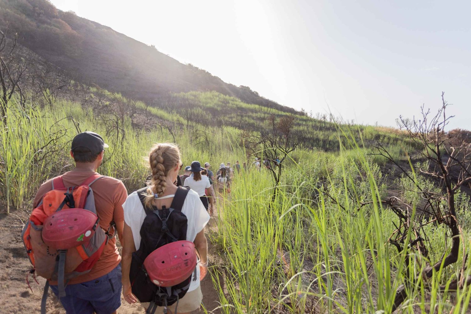 Embark on a guided hiking trip and witness Stromboli Island at sunset. Marvel at the breathtaking island views and watch the active volcano light up the night sky. Meet your guide and set off from Piazza San Vincenzo 2 hours before sunset. After a safety briefing, start your hike from a nature trail that leads to 400 meters, the maximum altitude allowed with a volcanological guide. Soak up the dramatic views of the summit craters and Sciara del Fuoco. During the trek, take breaks to take in the views and even visit the old island cemetery. Cross the Mediterranean shrubs, accompanied by the constant view of the Strombolicchio.  On arrival at Sciara del Fuoco, marvel at the sunset that colors the Aeolian archipelago red and witness the volcanic eruptions lighting up the night sky. Then, make your way downhill in the dark, equipped with torches, and return to the starting point.