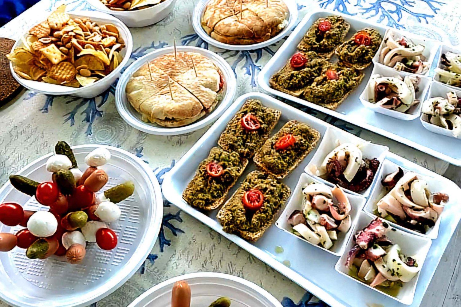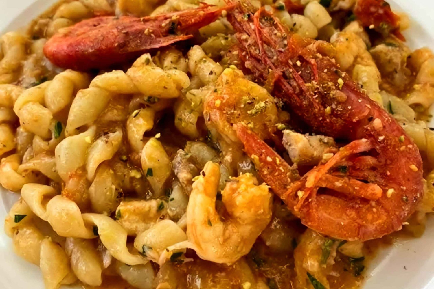 Departure at 10:30 a.m. from Palermo Marina Yachting in Palermo. Comfortable sailing to the Grotta della Regina with the option of our free photography service included. Pass by the historic Florio residence, the fishing village of Arenella, and the 14th-century Bordonaro tuna fishery. After 30 minutes, arrive at the beautiful Baia di Mondello with its shallow waters, sand, and crystal-clear sea. Enjoy a Spritz aperitif and various appetizers. Swim, enjoy water activities, and relax in the sun on comfortable cushions. At 1:30 p.m., lunch is served, cooked for you by the chef/captain while you sit comfortably at the table, with a mixed plate of many specialties followed by typical homemade fresh pasta with fish and vegetables. Drinks are included, with a choice of Grillo Doc white wine, Moretti beer, or cola and mineral water. Followed by espresso coffee, limoncello, and traditional sweets. Free time to relax in the sun, enjoy music, and the sea. At 4:00 p.m., fresh fruit will be served with sparkling wine offered by the captain. At 5:00 p.m., drop-off at the port. Guests have access to an indoor toilet and a cabin to change or store their belongings and bags. Menus for food intolerances are available. We recommend bringing a hat, sunglasses, and sunscreen. An unforgettable day. We love taking care of our guests.Includes