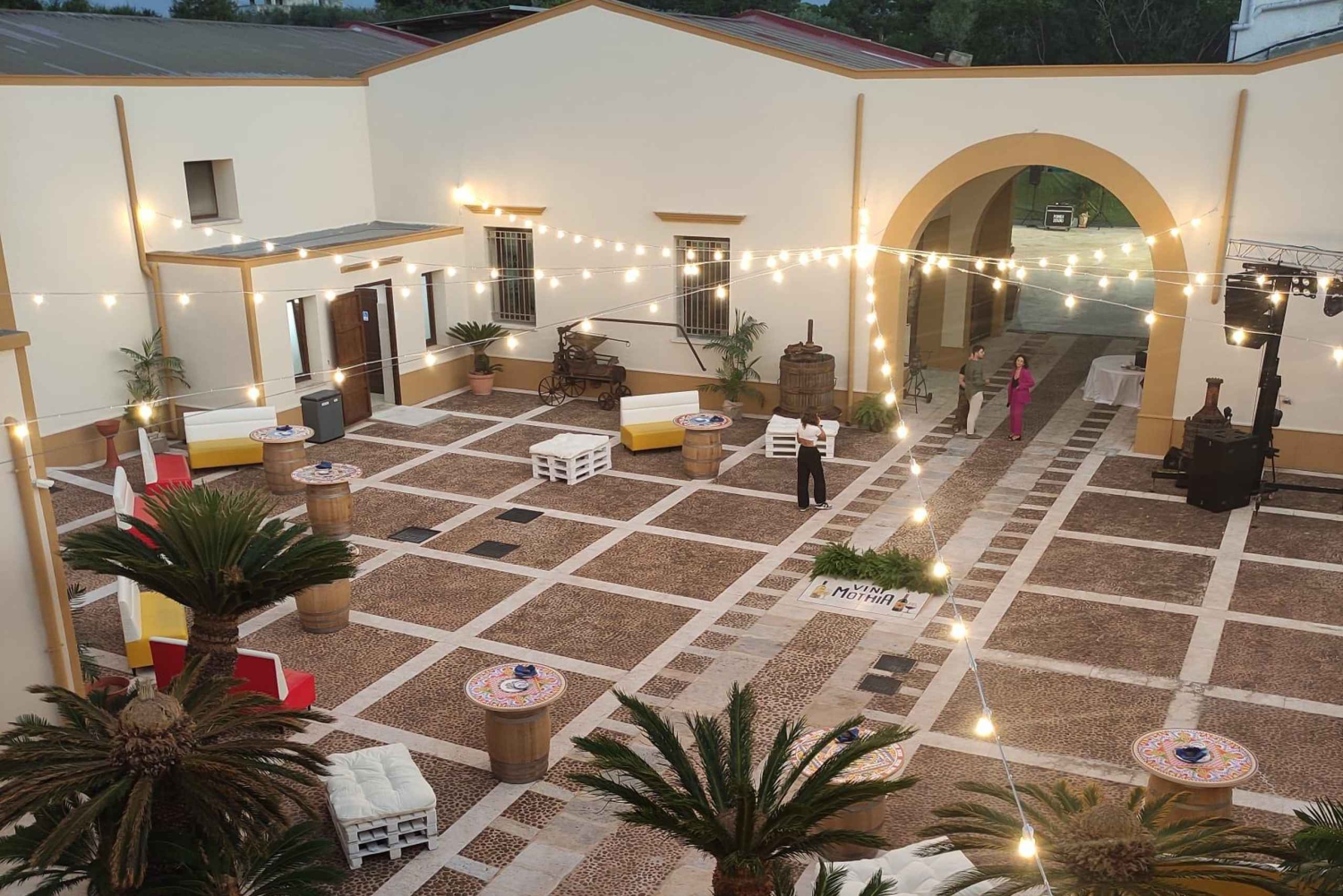 You'll be welcomed by the Bonomo family in a historic Baglio, a building from the 1800s whose architecture reflects the history, culture, and tradition of Sicily. When you arrive, you'll get a bag with a personalized glass that you can take home as a souvenir of the evening's emotions. You'll be taken on a tour of the winery, visiting the different wine-making areas and the old oak barrel cellar, where you'll hear the fascinating story of Marsala wine and its secrets. Around 8:00 pm, we'll kick off the tasting of our finest wines, like Grillo and Nero d'Avola, which really capture the essence of the region and its warm, sunny vibe. The wines will be paired with typical dishes to savor traditional Sicilian cuisine with its flavors and aromas. It'll be a casual tasting in the Baglio's inner courtyard, all decked out and lit up for the occasion, so you can really soak in the beauty of Sicily. To make this experience super relaxing and avoid any confusion, we won't be pairing the wines with food at a buffet. Instead, each guest will get a big ceramic plate with some of the most typical Sicilian dishes, like arancinette, pizza rianata, and caponata. Guests can sit and use the characteristic tables decorated with traditional colors and patterns as a support, or they can sit on colorful sofas. The evening will be jazzed up with some background music to make the tasting unforgettable and full of excitement. Sicily is also famous for its sweet pastries, and you just have to try them The event will wrap up around 10:00 pm with sweet ricotta cannoli paired with Marsala wine, one of the world's top dessert wines, for a one-of-a-kind taste experience. Join us for a fun and exciting evening Let the beauty of real Sicily sweep you off your feetIncludes