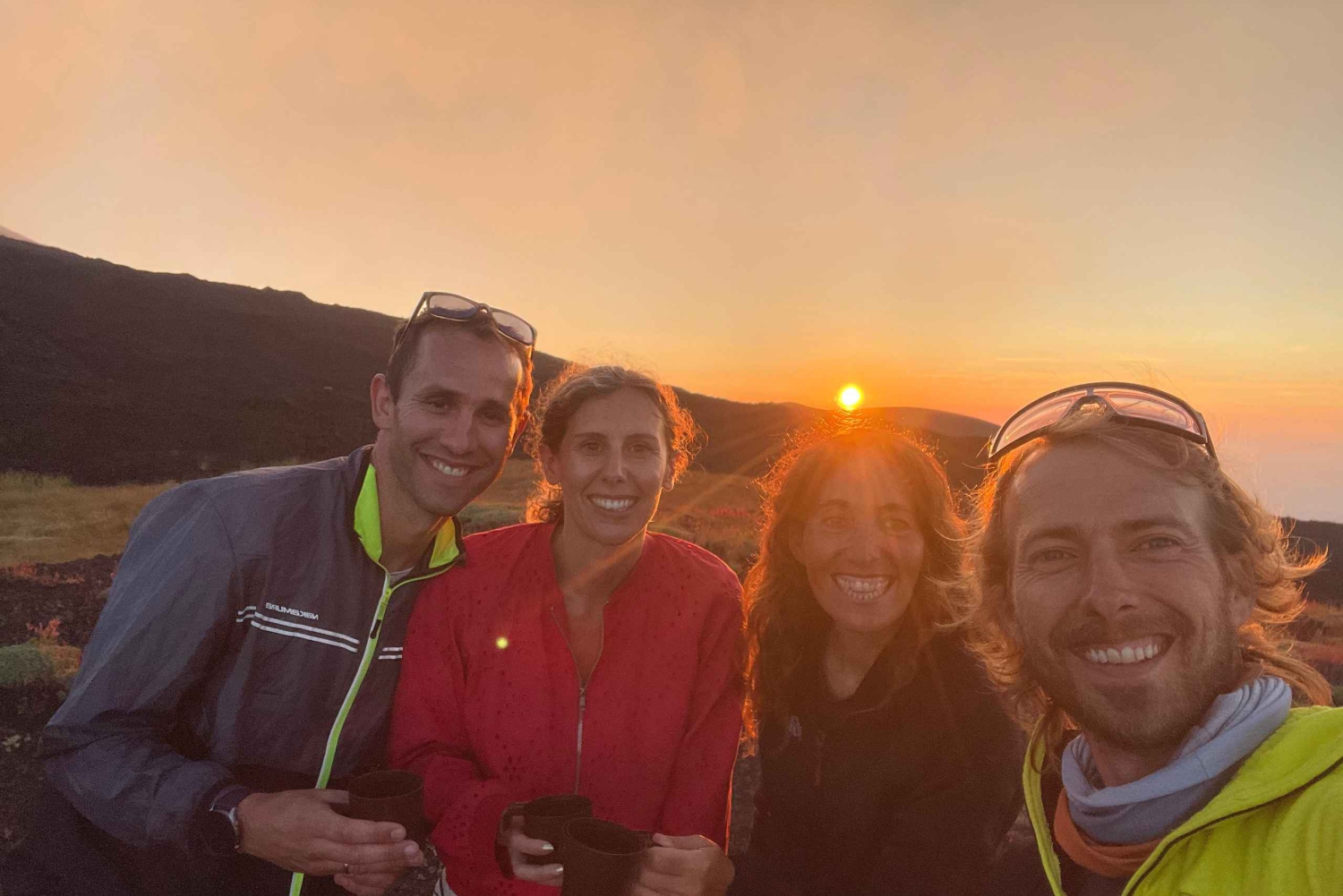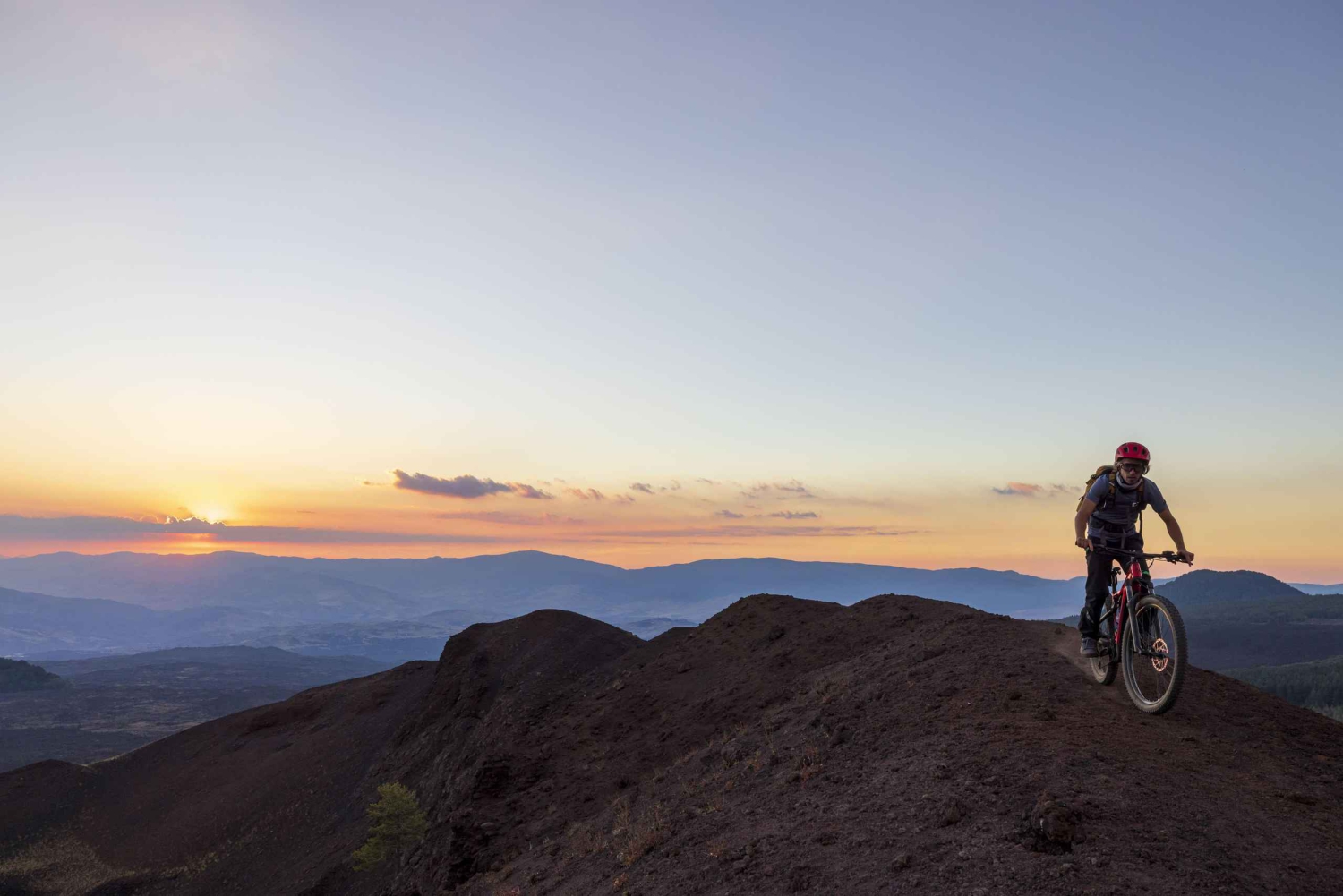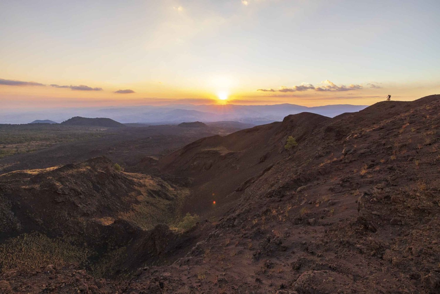 Etna Sunset by E-Bike – Emotion at Sunset on the Volcano Cycle through expanses of volcanic sand, rocks sculpted by fire, and trails suspended between sky and craters. In front of you, Etna breathes, majestic and silent. And above you, the sky is colored with gold and fire. Etna Sunset by E-Bike is much more than a day trip: it is a close encounter with the primordial force of nature, a journey into authentic beauty, suitable for families. Suitable for everyone, even children aged 7 and up, this approximately 2-hour experience takes you on a discovery of the most evocative places on the southern slope of Etna, without stress, without noise, without combustion engines. ♂️ First stop – Lateral crater of 1892 Second stop – Lava cave from the 2001 flow Back in the saddle, we will reach a spectacular lava flow cave: a natural tunnel formed by the 2001 lava flow, the last major lateral eruption of southern Etna. With headlamps and helmets, we will descend for a few minutes into the heart of the earth, enjoying a fascinating and safe experience, suitable even for children. Third stage – Sunset at 2200 meters We resume our climb, crossing recent lava flows, until we reach a natural viewpoint at an altitude of 2200 m. From here, the view is simply breathtaking: the Ionian coast opens up before us and behind Etna lie the hinterland and the Madonie mountains. This is the highlight: the sunset sets the sky ablaze, the stone turns red, and the air becomes silent. It is one of those moments that you will never forget. Etna bids us a silent farewell, while a vivid emotion remains within us. Why choose it? Ideal for families, couples, and lovers of authentic nature Accessible from 7 years of age and up Exciting but not demanding, also perfect as a first e-bike experience Quiet, sustainable route, far from mass tourism Includes crater, lava cave, and sunset: a concentrated experience of Etna in 2 hoursIncludes