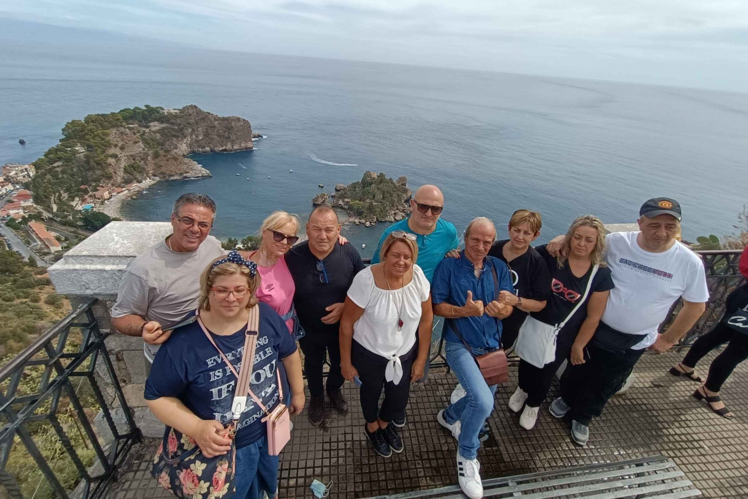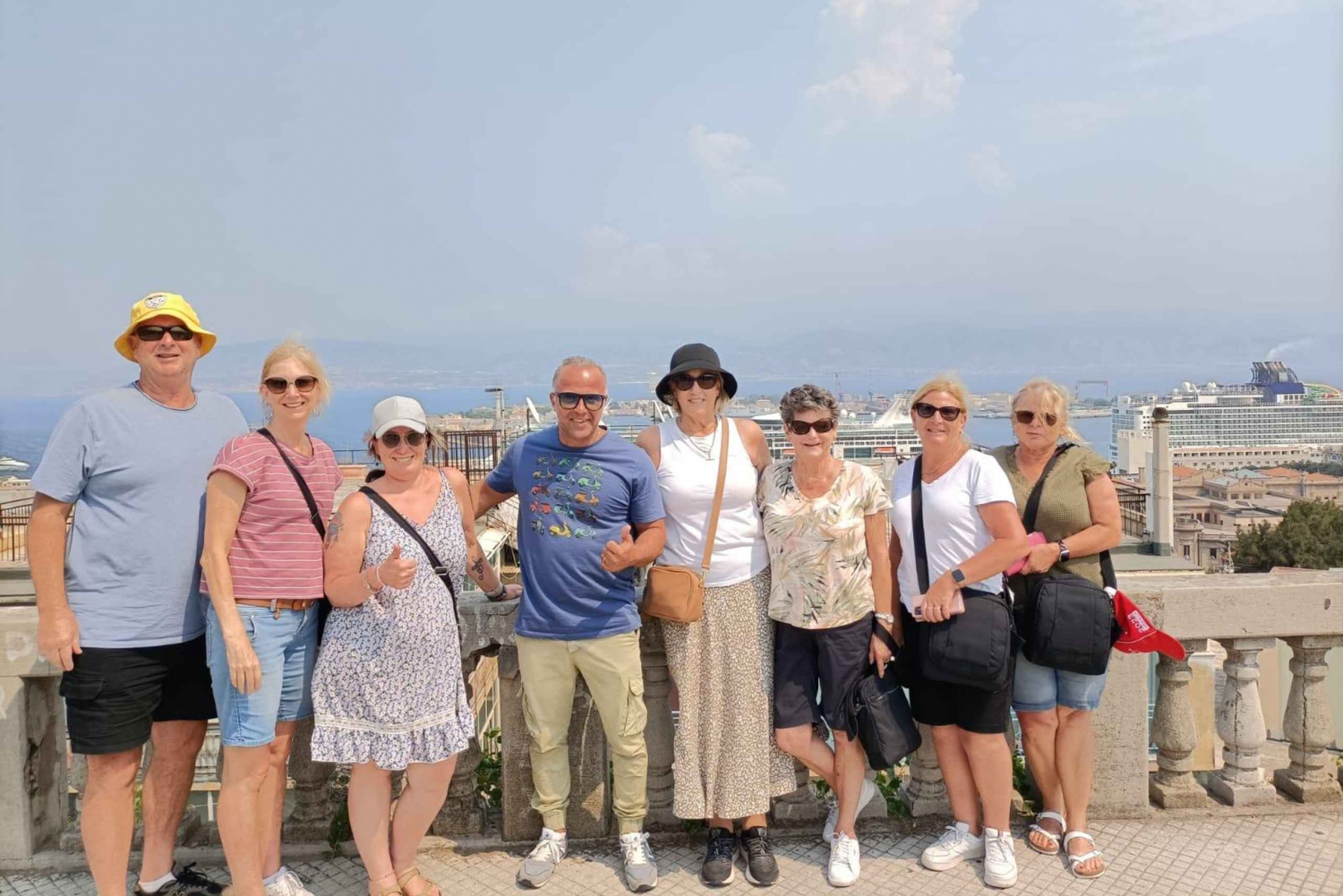 Our tour includes arrival at the first town, that of Santa Venerina, coming up from Giarre, in which we stop for a short stop to admire the town's cathedral. During the second stop we stop for a visit and possible tasting in a local farm to try many typical products of our land (honey, cheese, pistachio, oil, olives, almonds). When the tasting is over, we set off to explore Europe's largest volcano, Mount Etna. Arriving at an altitude of 2,000 meters, we stop at Piana Provenzana, where the two inactive craters, the Silvestri craters, immediately stand out to the eye. Stopping for about 1 to 2 hours by arrangement, we take a short walk to the Silvestri craters and along the road where souvenirs can be purchased, with the possibility of also hiking up to 2,500 meters and to 3,000 meters with the typical local cable car together with the guide. (Cable car not included in the tour price) Next we will move to Taormina, a typical Sicilian town, where you can walk along the Corso Umberto (ancient Roman road) leading to the center of Taormina where you can admire the huge square overlooking the sea. Walking through the streets of Taormina are many quaint and ancient places as well as the very famous Greek Theater of Taormina. After the Taormina tour we go to see one of the most beautiful viewpoints, called the Balcony, from which you can admire the beautiful beach of Isola Bella. Finishing the tour of Taormina we will return to Messina passing by one of the most beautiful and special places in the city, the sanctuary of Christ the King, from which it is possible to see the beautiful panorama of the Strait of Messina. Finishing we go to the cathedral of Messina to view the largest astronomical and astrological clock in the world. There we will take you to a bar for a tasting of Messina granitas and cannoli. (The tasting at the bar is included in the tour price)Includes