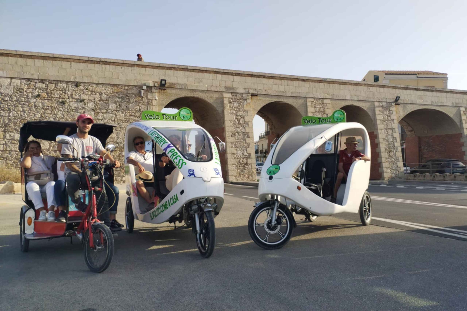 After being picked up from your accommodation in Ortigia, your Velo Bike tour around the ancient city (Syracuse) will begin. You will be taken to various parts of the island. Syracuse has a unique ecological system, both inside and outside Ortigia On board your electric velobike (rickshaw), your driver will introduce you inside the magnificent labyrinth of Ortigia, giving you the chance to find and photograph the history left by different populations at each stop. The tour also includes the explanation of historical places and the sight of impressive panoramas. At the end of your experience, you have the option to be dropped off at any location of your choice within OrtigiaIncludes