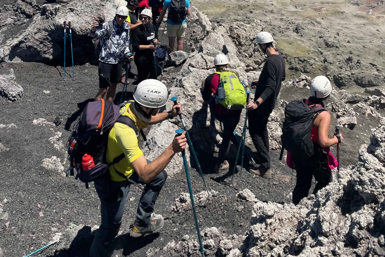 Lähde seikkailulle Euroopan korkeimmalle aktiiviselle tulivuorelle asiantuntevien vulkanologisten oppaiden kanssa ja saavuta Etnan todellinen huippu 3 300 metrin korkeudessa. Retki alkaa tapaamispaikasta 'Piano Provenzana Etna Nord'. Kun olet saanut tarvittavat varusteet vaellukseen (kengät, kypärät, takit, kepit), menet nelivetoisella jeepillä ylös, kunnes saavut 2930 metriin. Tästä kohdasta alkaa vaellus, joka vie keskuskraatterille 3 350 metrin korkeuteen Nauti reitistä kävellen aiempien purkausten laavavirtojen päällä, ihastele pommeja ja vulkaanista jätettä matkan varrella Kun pääset huipulle, ihastele vulkaanista toimintaa, kuten kaasupäästöjä ja höyryaukkoja, sekä neljää aktiivista kraatteria: South-East, Bocca Nuova, North-East ja Central Nauti panoraamanäkymästä Sisiliaan rannikolle saakka ja sään salliessa aina Liparisaarille saakka Lounastauon jälkeen laskeudumme jeeppien nouto-pisteeseen, josta palaamme toimistoon ja jätämme varusteet. Kokonaiskesto on 5–6 tuntiaIncludes