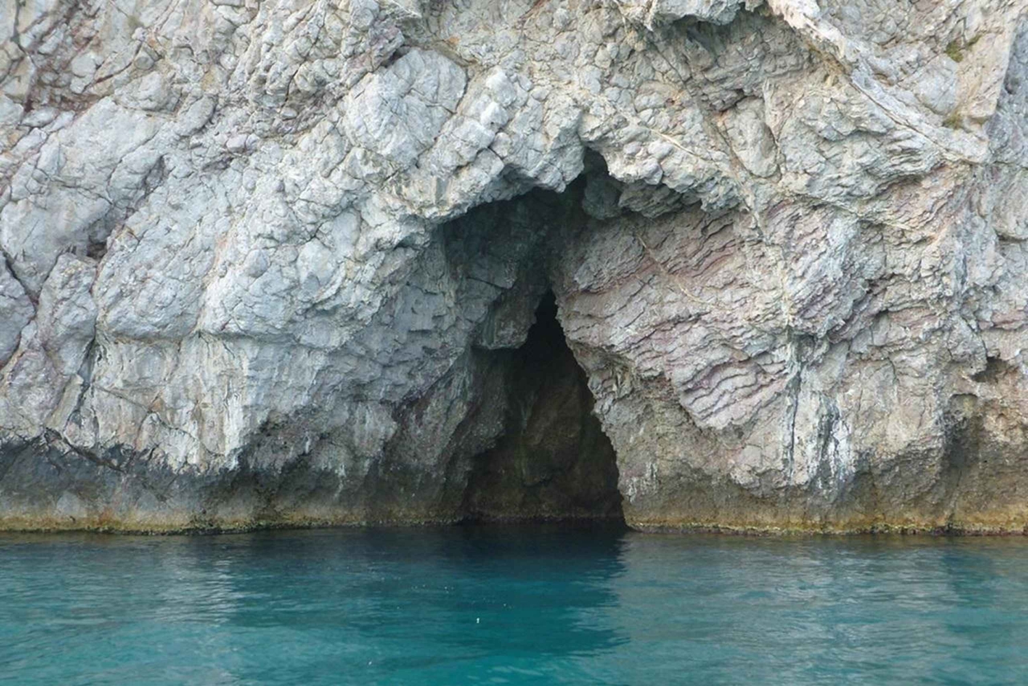 - Näkymä mereltä kallioihin, luonnollisiin luoliin ja merenpatsaisiin.
