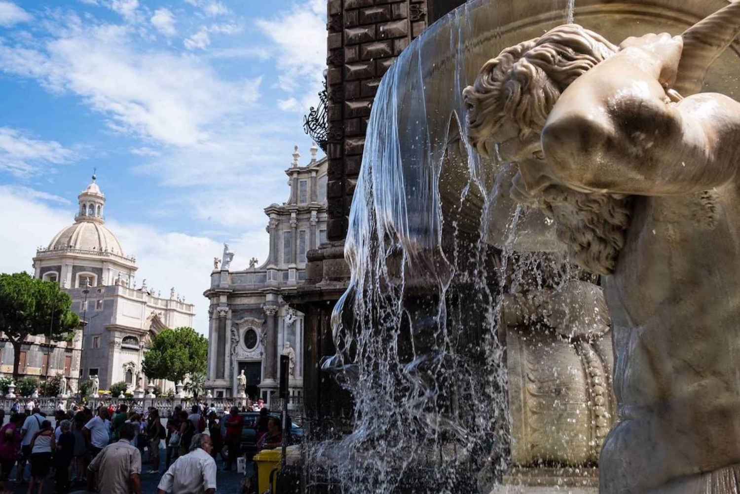 Découvrez l'âme de l'ancienne ville de Catane lors d'une visite guidée à pied. Explorez le centre historique de Catane avec un guide local. Ayez un aperçu de l'histoire et de l'architecture de cette ville avec un guide local. Rencontrez votre guide à la statue de l'éléphant et symbole de Catane sur la Piazza del Duomo. Émerveillez-vous devant l'étonnant dôme de la cathédrale de la Piazza del Duomo. Voyez comment la pierre de lave a donné un flair unique aux églises et aux palais du baroque tardif de Catane. Rendez-vous à Pescheria, le vibrant marché historique aux poissons. Rejoignez la rue Crociferi où vous pourrez voir l'église ornée de San Benedetto et l'église de San Giuliano qui est un exemple étonnant du baroque de Catane. Finissez à Etnea où se trouvent des ruines, des bâtiments historiques et des boutiques. Ayez la possibilité d'acheter un arancino, un cannoli sicilien, ou une autre gourmandise.