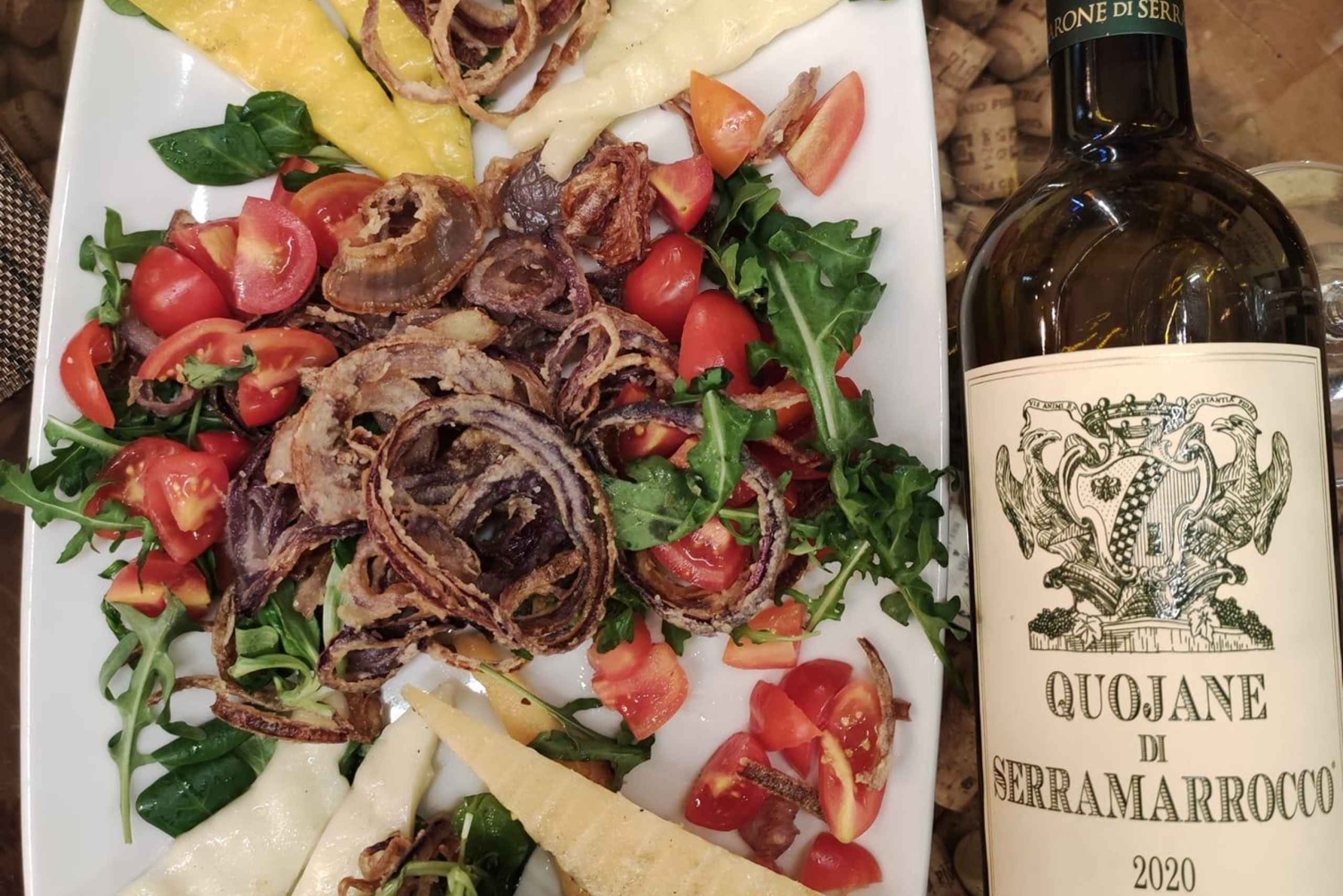 Au Winehouse, au port de Trapani, juste en face du point d'embarquement des hydroptères, vous pourrez profiter de votre expérience sensorielle en dégustant des vins siciliens accompagnés de produits locaux typiques. Nous commencerons par un Zibibbo vinifié sec aux notes de menthe et de romarin et accompagné de fromages locaux (frais et semi-affinés). Suivra le Cataracte, un vin semi-aromatique qui accompagnera le cœur de thon. La dégustation se terminera avec du Grillo, un ancien cépage sicilien que nous accompagnerons de bresaola de thon ou de pesto de Trapani.