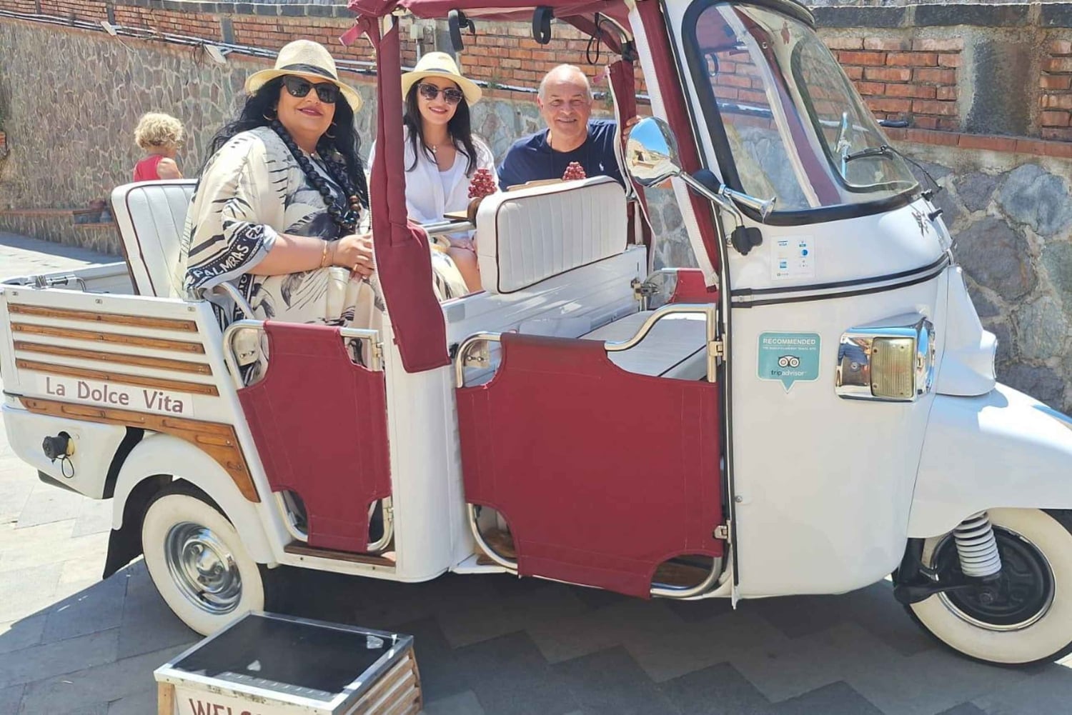 Visite panoramique en Ape « La Dolce Vita » du Bar Vitelli à l'église de San Nicolò.