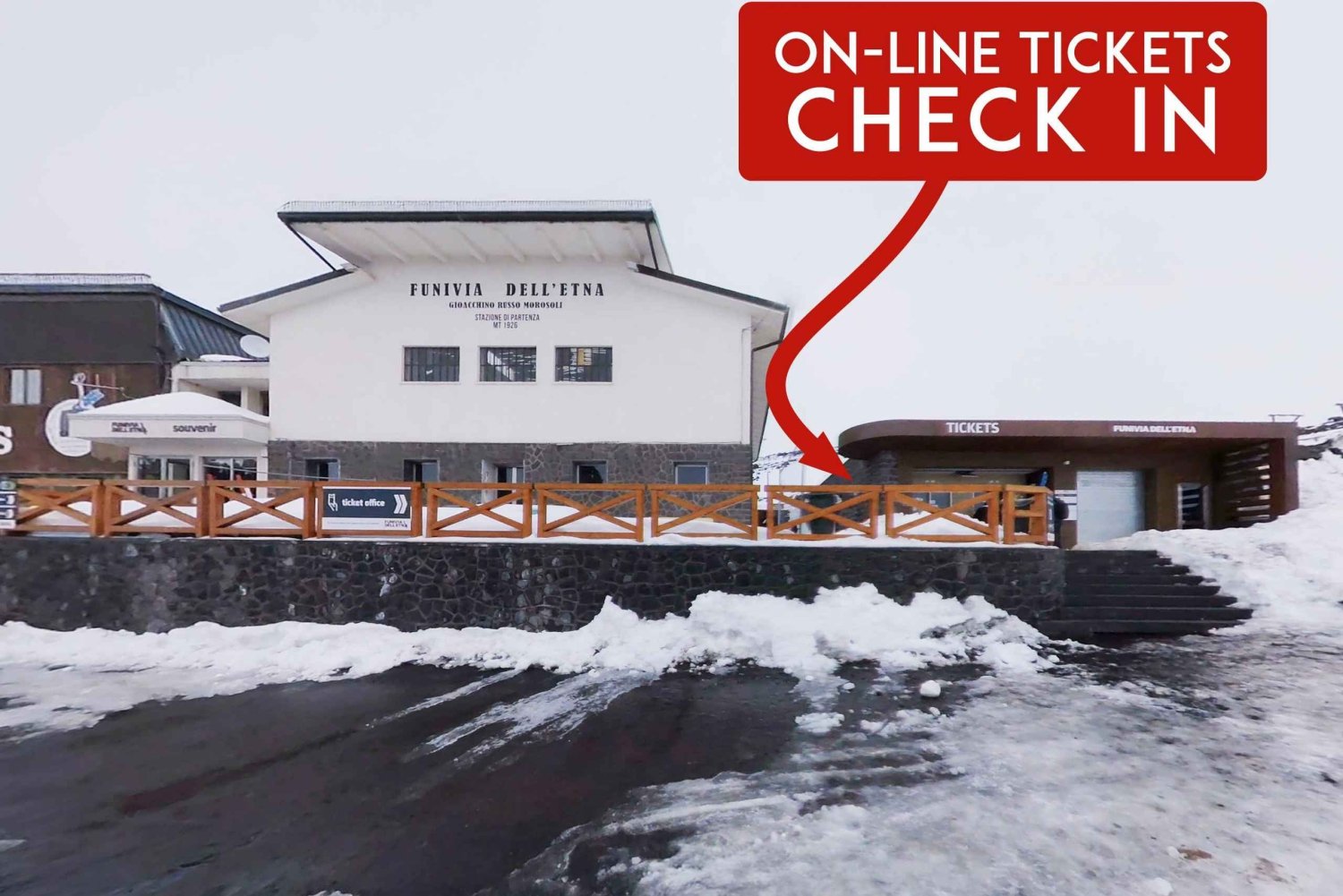 Empruntez le téléphérique pour monter au sommet de l'Etna et profitez d'une visite au pied des cratères. Explorez la région à bord d'un véhicule 4x4 conçu pour s'adapter au terrain. Descendez du bus pour en apprendre davantage sur le volcan lors d'une courte visite à pied avec votre guide. Veuillez valider votre billet au guichet dédié, situé à l'entrée de la station « Funivia dell'Etna ».. Cet accès est réservé aux acheteurs en ligne, vous permettant d'échanger votre bon numérique contre des billets physiques. Votre aventure débute à une altitude d'environ 1 900 mètres (6 300 pieds) à la station de départ « Funivia dell'Etna ». Rendez-vous à la station supérieure, à environ 2 500 m au-dessus du niveau de la mer. En cas de vent fort, votre ascension sera effectuée à bord des bus 4x4. Une fois arrivé à la station supérieure, montez à bord d'un bus 4x4 spécial pour atteindre la zone de hauteur maximale autorisée du sommet (environ 2 900 m). Poursuivez votre expérience avec un guide de volcan alpin pour découvrir les environs. En compagnie du personnel, qui assurera votre sécurité, admirez le paysage enchanteur au fond du cratère central qui, dans des conditions de visibilité optimales, vous permettra de vous perdre dans la vue d'une grande partie de la Sicile orientale. En cas de neige, votre ascension sera effectuée à bord de véhicules spéciaux à chenilles (dameuse). Après avoir passé environ 30 minutes à explorer la région, retournez à la station du téléphérique et redescendez du volcan avec votre billet aller-retour.Includes
