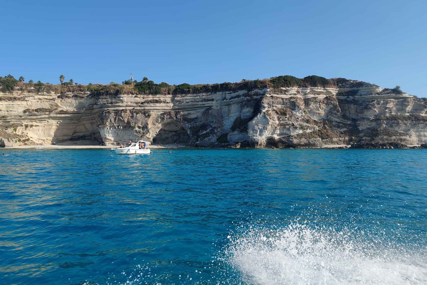 Saluez au bord de notre nouvelle barque avec skipper pour une matinée dans une mer merveilleuse et laissez-vous séduire par nos eaux cristallines ! 3 heures environ suffisent pour s'immerger dans l'atmosphère calme et reposante de la côte intérieure des îles. Visitez les plus belles plages de la côte intérieure, des sites naturels que l'on ne peut atteindre qu'en passant par la mer. L'Isola bella di Tropea, la grotte mystérieuse et nascosta azzurra, où vous aurez la possibilité de faire du snorkeling et des photos sur l'eau pour rendre votre visite indimenticable, godere della bella Baia di Riaci e nuotare nelle sue insenature, l'antico porto Romano ed infine tra miti e leggende la rupe di Capo Vaticano, praja di focu e Mantineo. Avant le départ, un apéritif à base de vin vous sera offert, que vous pourrez déguster en même temps que des spécialités typiquement calabraises, pour vous donner du courage. Vous pouvez faire des excursions la matinée, le week-end ou l'entre-deux-guerres. Pour profiter de cette beauté, vous pouvez prendre un tramway romantique et exaltant, quand les eaux sont calmes et tranquilles, en dégustant un bon verre de vin de Calabre.Includes