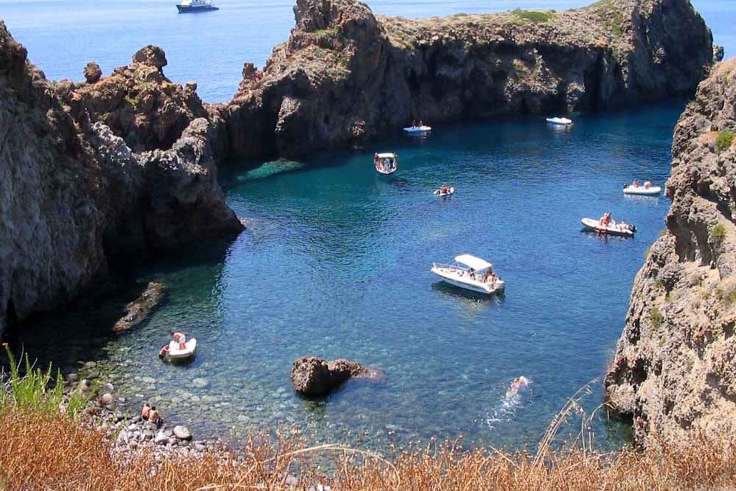 Preparati a intraprendere un'avventura indimenticabile nelle meravigliose Isole Eolie! Il tuo viaggio inizia dal porto di Tropea alle 10:20. Da lì, viaggerai verso l'incantevole isola di Panarea, arrivando intorno alle 12:45. Una volta arrivato, l'isola è tua da esplorare! Fai un tuffo nelle acque cristalline, passeggia nella pittoresca cittadina, concediti un delizioso pranzo o avventurati nel villaggio preistorico di Capo Milazzese. Il villaggio risale al 1400 aC ed è raggiungibile in soli 25 minuti a piedi o in taxi. Questa destinazione unica e affascinante ti trasporterà indietro nel tempo e ti lascerà a bocca aperta per l'antica storia dell'isola. Nel corso della giornata, partirai da Panarea intorno alle 15:15 e ti dirigerai a Stromboli, una delle isole più pittoresche del Mediterraneo. Al tuo arrivo alle 16:00, fai una piacevole passeggiata sulla spiaggia di sabbia nera di S. Vincenzo e immergiti nello splendido mare blu cobalto. Puoi anche concederti un po 'di cucina locale o concederti un po' di shopping. Mentre il sole comincia a tramontare, verso le 19:40 vi imbarcherete in un emozionante viaggio verso la 'sciara di fuoco'. Dopo un giro in barca di 30 minuti verso il lato opposto dell'isola, assisterai all'eruzione notturna del vulcano attivo di Stromboli. Questa meraviglia naturale è uno spettacolo davvero affascinante che ti lascerà senza fiato! Farai una sosta di 20 minuti lì, permettendoti di ammirare appieno la bellezza di questo paesaggio vulcanico unico. Al termine della serata, farete ritorno a Tropea, con arrivo intorno alle 22:30, e infine al porto di Vibo Marina intorno alle 23:30. Questo incredibile itinerario offre un'esperienza irripetibile, mettendo in mostra la bellezza naturale, la ricca storia e la cultura unica delle Isole Eolie. Preparati a creare ricordi indimenticabili e imbarcati in un'avventura indimenticabile!Includes