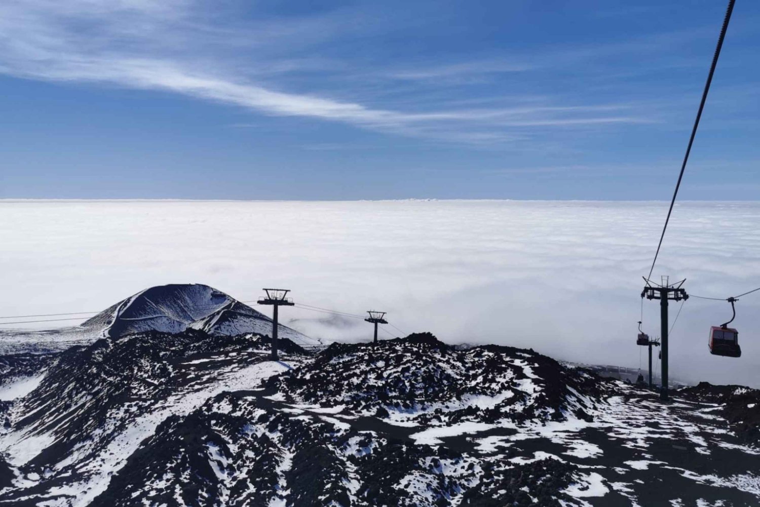 Questa escursione di notevole bellezza è guidata da guide alpine/vulcanologiche autorizzate. I gruppi sono molto piccoli per rendere l'escursione sicura e intima. Scopri il paesaggio invernale dell'Etna con un'escursione per escursionisti esperti. Salendo a bordo di una funivia, si raggiungeranno circa 3.000 metri di altitudine. Partendo dall'infopoint di Ashàra, situato in Piazzale Rifugio Sapienza, prendi una funivia fino a 2.500 metri di altitudine. Da lì, inizia il trekking fino a circa 3.000 metri. La presenza di ghiaccio e neve rende questa escursione una sfida divertente per gli escursionisti più esperti. Cammina attraverso lunghe distese di neve e visita il cono dell'eruzione del 2001, la Valle del Bove e i crateri del Barbagallo. Ammirate il cratere sommitale dell'Etna da una distanza di sicurezza prima di iniziare il cammino di ritorno. Se le condizioni della neve lo permettono, visita un canale di lava prima di arrivare alla stazione superiore della funivia che ti riporterà indietro.Includes