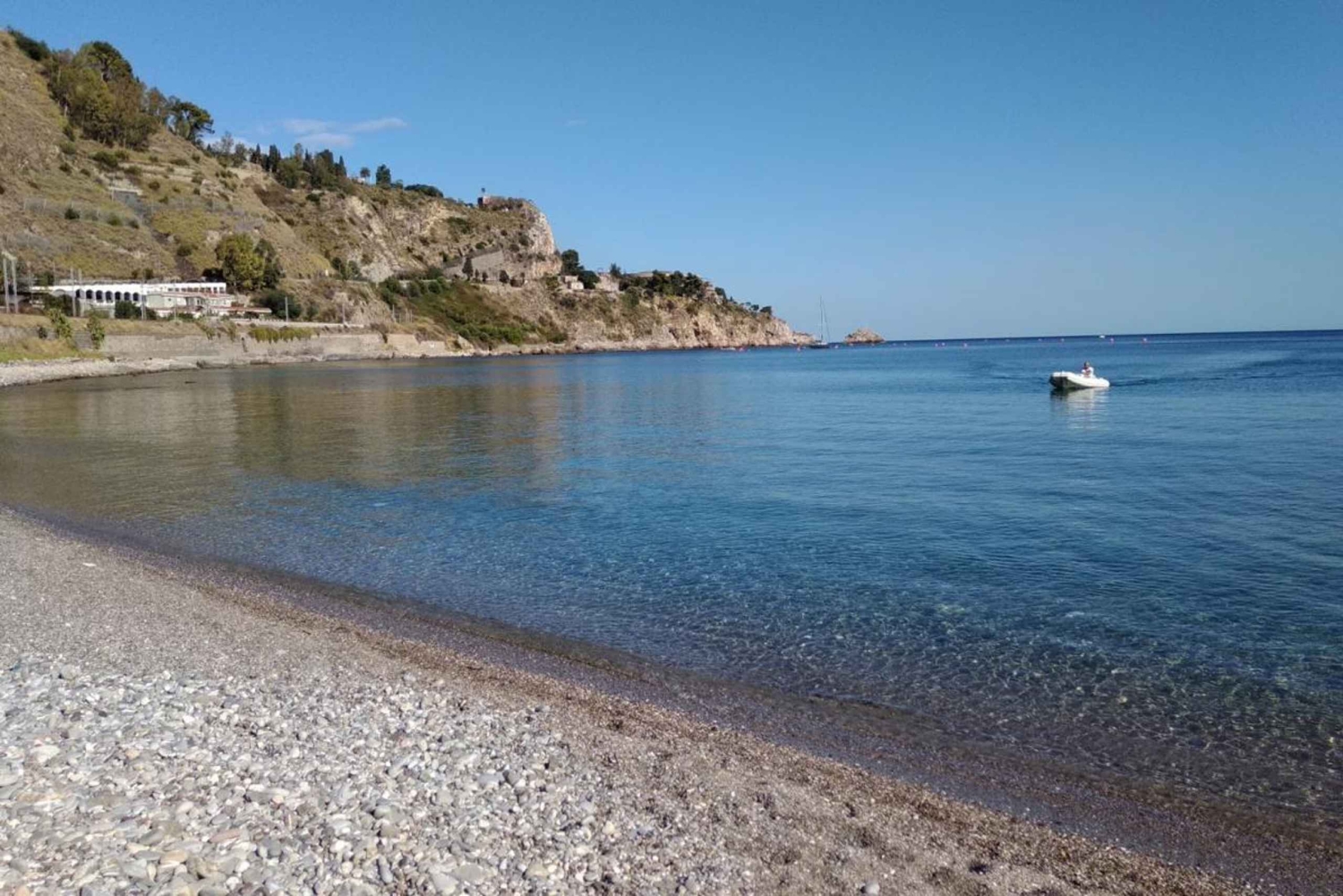 Partendo dal porto di Giardini Naxos, navigheremo verso la maestosa Capotaormina, ammirando la Grotta dell’Amore e l’iconico Scoglio del Ficodindia. Proseguiremo verso la Riserva Naturale di Isola Bella per esplorare la Grotta delle Sirene e tuffarci nelle acque turchesi per una nuotata rigenerante. Mentre vi rilassate, l'equipaggio servirà a bordo un aperitivo con Prosecco ghiacciato e frutta fresca di stagione.