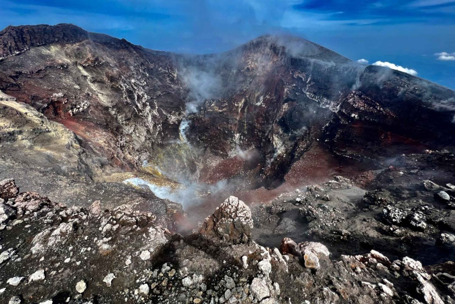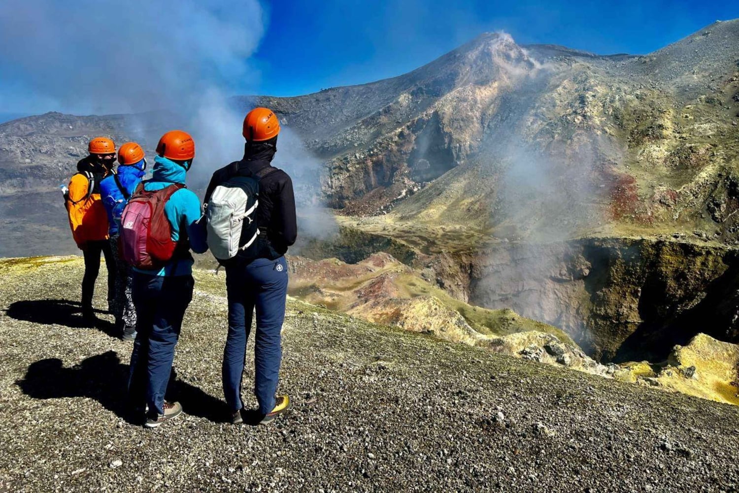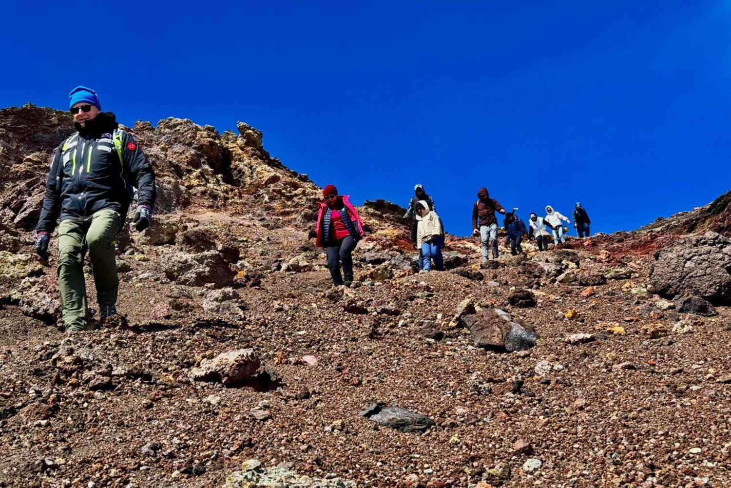 ヨーロッパで最も高い活火山で、認定された火山ガイドと一緒にユニークな冒険を体験してください。 エトナ山の頂上クレーターに到達し、温かい溶岩流を探索し、息をのむようなパノラマビューから印象的なボーヴ渓谷をご鑑賞ください。 集合場所 エトナ南ケーブルカー駅の正面にあるBar Terrazza dell'Etna内の当社オフィス、Rifugio Sapienzaでお会いしましょう。 ケーブルカーと4WDで登山いたします ケーブルカーで標高2,500メートルまでお進みください。そこからは、月面のような風景の中を特別な4WD車で標高2,920メートルまでお進みください。そこからトレッキングが始まります。 頂上にある噴火口を目指すトレッキング ハイキングは、標高3,400メートルの中央火口の縁まで続きます。 ここからは、360度の素晴らしい景色をお楽しみいただけます。天気が良ければ、エオリア諸島、北部の海岸線、シチリア島東部全体が見えることもございます。 下山と帰路の旅程 頂上エリアを離れた後のルートは次のとおりです。 2002年の噴火でできたクレーターを横断します 魅力的な溶岩洞を探検します ボーヴ渓谷の広大な自然の円形劇場をご鑑賞ください ケーブルカーでサピエンツァ避難所の出発地点へお戻りください。 ⚠️ 重要な情報です 火山活動や天候により、ツアーが変更または制限される場合がございます。 長年にわたる科学研究の場であり、文化的にも興味深いエトナ山は、冒険、ハイキング、発見が同時に楽しめる絶好の場所です。Includes