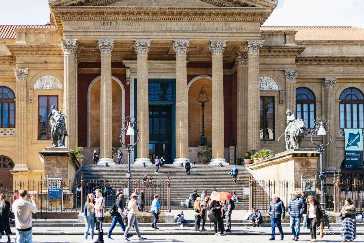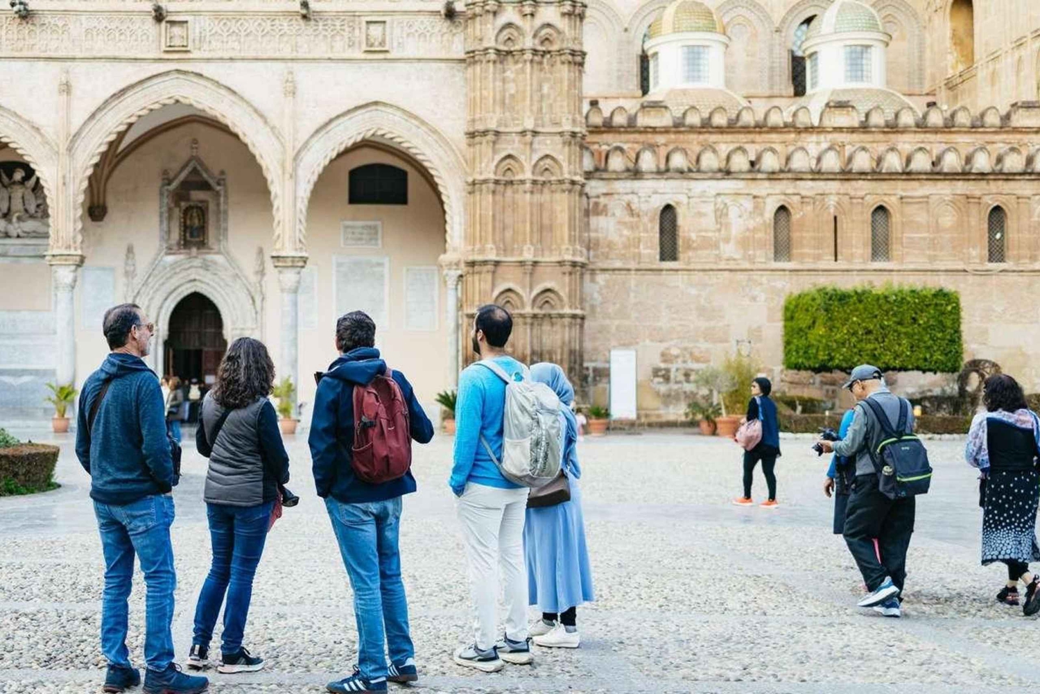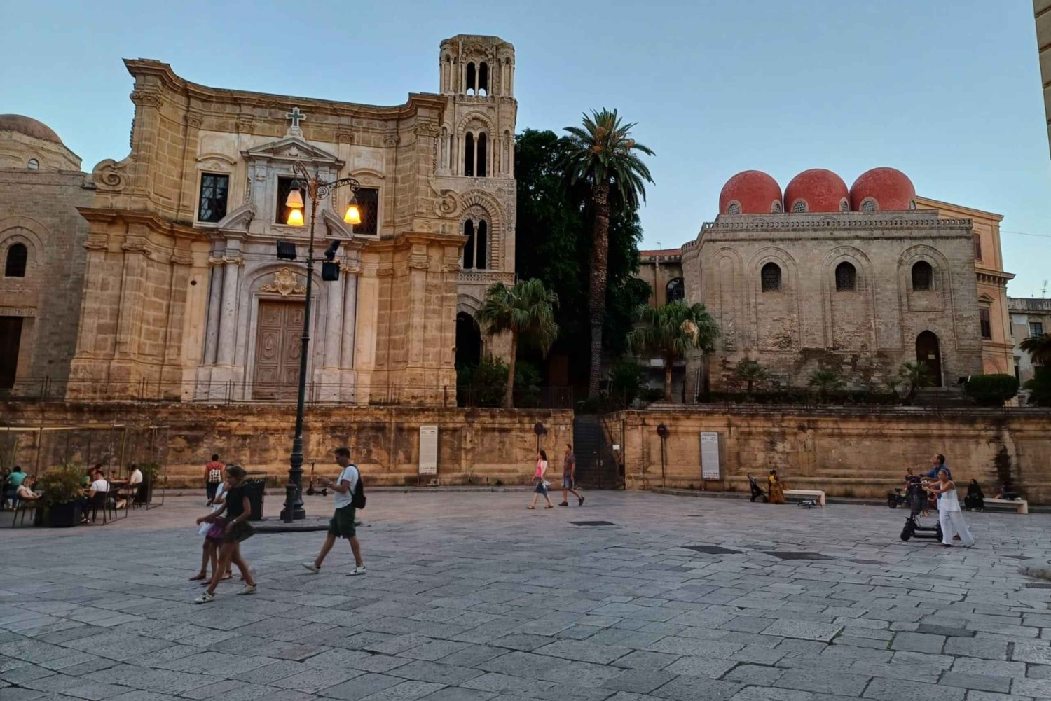 3 時間のガイド付きウォーキング ツアーで、パレルモ中心部の豊かな歴史、文化、建築を体感してください。ガイドが、賑やかな市街の広場や有名な古いストリート マーケットを通り抜けて、ノルマン シチリアの教会や美しい宮殿にご案内します。 まずはマッシモ劇場へ向かい、完璧な音響で知られるイタリア最大のオペラハウスについて学びましょう。次に、12 世紀に建てられ、ユネスコの世界遺産に登録されている美しいパレルモ大聖堂を訪れます。パレルモで最も重要なバロック様式の教会の 1 つであるジェズ教会や、15 世紀の傑出した宮殿であるプラエトリアン宮殿をご覧ください。 次に、噴水の像が裸であることから地元の人々から「恥の広場」と呼ばれているプレトリア広場へ向かいます。また、近くのベリーニ広場も訪れます。ここでは、サンカタルド教会とマルトラーナ教会という、シチリアのノルマン時代の教会とユネスコ世界遺産の 2 つの教会を見ることができます。 途中で、ガイドが有名なカポ通りの市場を案内します。屋台の間を歩きながら、活気のある光景やさまざまな匂い、織物、色とりどりの食べ物を観察してください。パネッレ、クロッケ、スフィンチョーネ、アランチーナなど、市内で人気の屋台料理を購入して味わうこともできます。 ツアーは、歴史的なパレルモの中心部、バロック様式のビリェーナ広場 (別名クアトロ カンティ (4 つの角)) で終了します。この広場は、パレルモで最も有名な 2 つの通り、ヴィットーリオ エマヌエーレ通りとマクエダ通りの交差点に 1600 年代初頭に建てられました。Includes