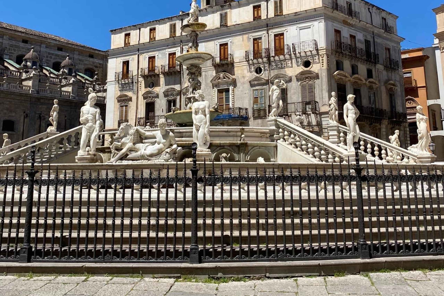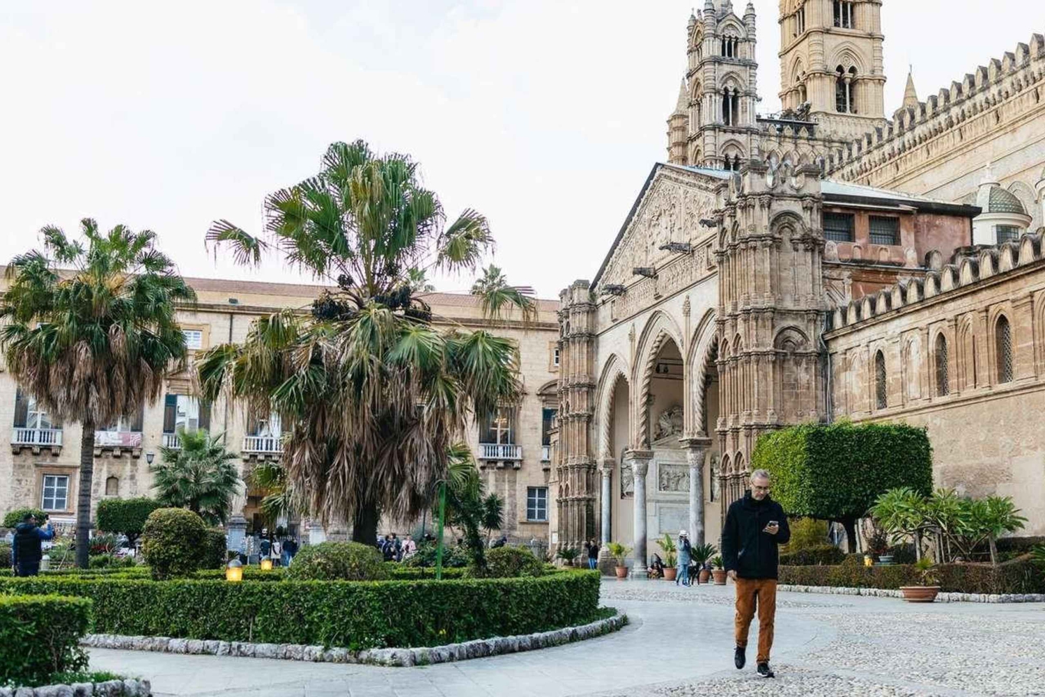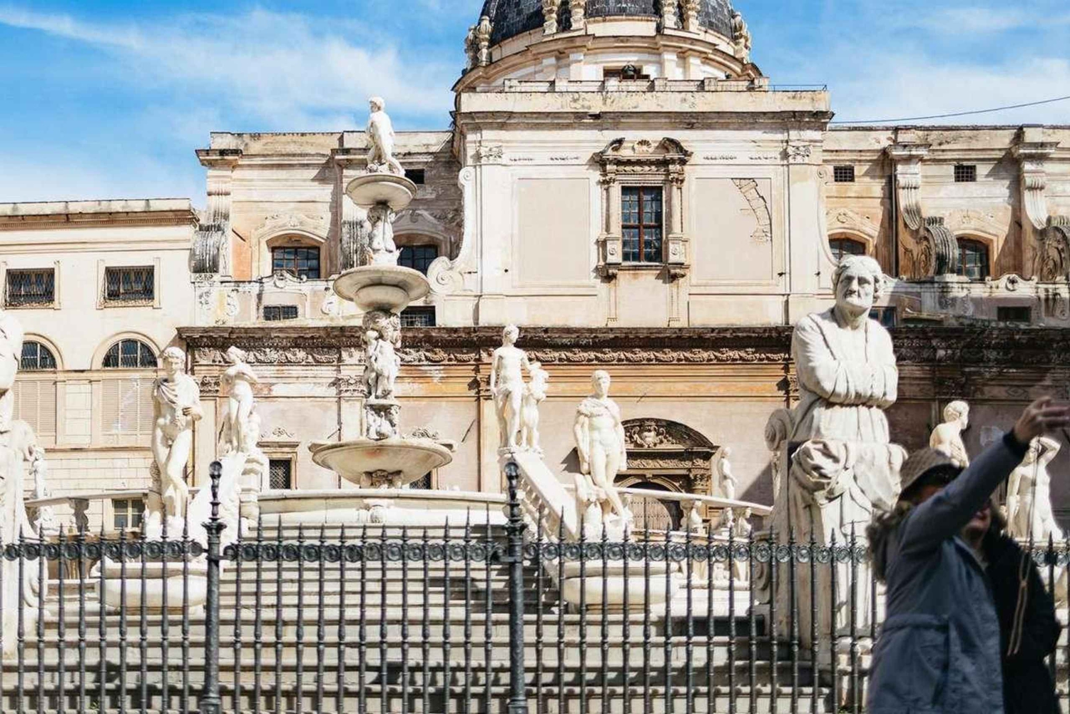 3 時間のガイド付きウォーキング ツアーで、パレルモ中心部の豊かな歴史、文化、建築を体感してください。ガイドが、賑やかな市街の広場や有名な古いストリート マーケットを通り抜けて、ノルマン シチリアの教会や美しい宮殿にご案内します。 まずはマッシモ劇場へ向かい、完璧な音響で知られるイタリア最大のオペラハウスについて学びましょう。次に、12 世紀に建てられ、ユネスコの世界遺産に登録されている美しいパレルモ大聖堂を訪れます。パレルモで最も重要なバロック様式の教会の 1 つであるジェズ教会や、15 世紀の傑出した宮殿であるプラエトリアン宮殿をご覧ください。 次に、噴水の像が裸であることから地元の人々から「恥の広場」と呼ばれているプレトリア広場へ向かいます。また、近くのベリーニ広場も訪れます。ここでは、サンカタルド教会とマルトラーナ教会という、シチリアのノルマン時代の教会とユネスコ世界遺産の 2 つの教会を見ることができます。 途中で、ガイドが有名なカポ通りの市場を案内します。屋台の間を歩きながら、活気のある光景やさまざまな匂い、織物、色とりどりの食べ物を観察してください。パネッレ、クロッケ、スフィンチョーネ、アランチーナなど、市内で人気の屋台料理を購入して味わうこともできます。 ツアーは、歴史的なパレルモの中心部、バロック様式のビリェーナ広場 (別名クアトロ カンティ (4 つの角)) で終了します。この広場は、パレルモで最も有名な 2 つの通り、ヴィットーリオ エマヌエーレ通りとマクエダ通りの交差点に 1600 年代初頭に建てられました。Includes