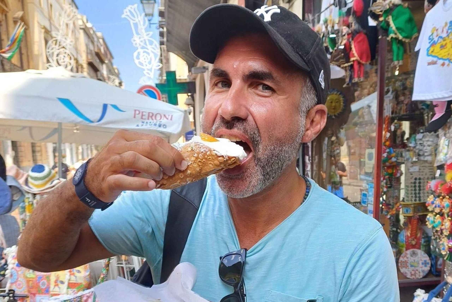 パレルモ中心部を巡るガイド付きウォーキングツアーでは、市内で最も象徴的で魅力的なモニュメントのいくつかを巡ることができます。ツアーはイタリア最大のマッシモ劇場から始まります。マッシモ劇場はベル・エポックの象徴であり、19世紀のパレルモの台頭の立役者である歴史的なフローリオ家と関係があります。 最も有名なシチリアのオペラ・デイ・プーピ劇場(ユネスコ世界遺産)の前を通過します。 すぐ近くにあるユネスコ世界遺産のパレルモ大聖堂を訪れます。この大聖堂はさまざまな建築様式が組み合わされており、シチリアの複雑で多民族的な歴史を反映しています。ここで1130年にシチリアの最初の王が戴冠し、偉大なフリードリヒ2世の墓があります。 ルートは、活気のある雰囲気と魚料理のレストランで知られるアラブ起源の古代市場であるメルカート・デル・カーポまで続きます。ここで少し休憩し、世界でも最高とされる有名なパレルモの屋台料理を味わう機会があります。 パレルモ最古の通り、非常に重要な記念碑や歴史的場所がたくさんある古代カッサロを通ります。 歴史的なパレルモの中心地であるクアトロ カンティに立ち寄ります。これは歴史的に非常に重要な示唆に富んだ広場です (その美しさから映画のセットとしてよく使用されます)。また、ベリーニ広場に立ち寄ります。ここでは、街の時代を超えた美しさに囲まれながら、世界でも最高のコーヒーとサンタ カテリーナ修道女のお菓子を楽しむことができます。 ツアーは、バッラロ市場とヴッチリア市場の近くにあるプレトリア広場で終了します。ここでは、「恥の泉」の美しさ、歴史的中心部を特徴付ける修道院、教会、宮殿の壮麗さを鑑賞できます。この体験では、パレルモの歴史に浸るだけでなく、滞在中に何をすべきかについての多くの個人的なヒントとともに、パレルモの人々の日常生活の本物の姿もご覧いただけます。Includes
