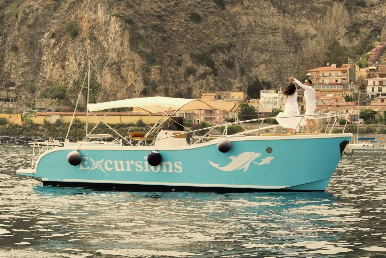 Rondvaart in de prachtige baai van Taormina met zwemmen en de mogelijkheid om dolfijnen te zien. Amandelgebak, prosecco, fruit en rustieke producten zijn op verzoek inbegrepen. Beleef een unieke ervaring in de prachtige omgeving van Taormina met onze kapitein Marco en zijn fantastische team. Een 2 uur durende excursie om de baai van Taormina te ontdekken. Isola Bella, Mazzarò baai, liefdesgrot, cactusvijg rots, blauwe grot, koraalgrot en Giardini Naxos baai. Startpunt: Saja jachthaven; Haven van Giardini Naxos. geniet vanIncludes