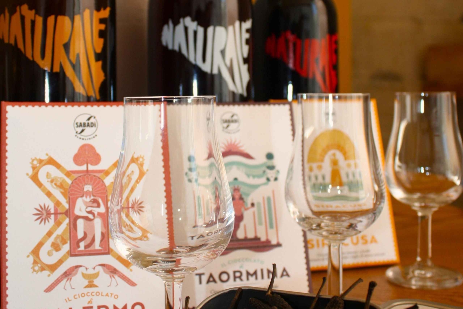 De tour omvat een rondleiding door de winkel met de chocolade-rijpingskelder. De rondleiding omvat uitleg over de technische kenmerken van ruwe chocolade (chocolade uit Modica), een stukje geschiedenis, een presentatie van de chocoladecollecties in de showroom, een gids voor het proeven van de chocolade in de winkel, met speciale aandacht voor de chocolade van de Grand Tour van Sicilië, inclusief de chocolade uit Syracuse. Je kunt de gerijpte chocolade proeven, dat is chocolade die op smaak is gebracht door contact met tabak, thee, bloemen, kruiden, specerijen enz.Includes