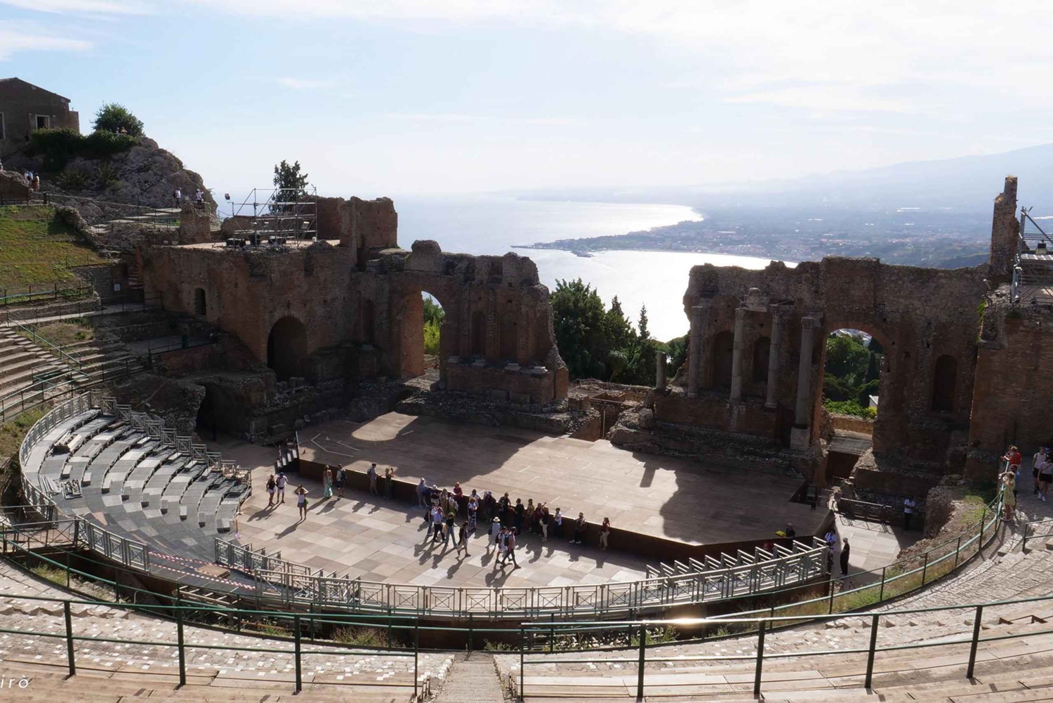 De tour begint in Taormina, bekend als 'de parel van de Ionische zee', een van de eerste Griekse kolonies aan de oostkust van Sicilië. Het prachtige centrum wordt gekenmerkt door zowel barokke als middeleeuwse stijl, wat het een unieke en zeldzame stad maakt. Als u door de hoofdstraat Corso Umberto loopt, begrijpt u de ware essentie van deze oude stad: de oude Romeinse Naumachia, de barokke en middeleeuwse stijlen van Piazza Duomo, Palazzo Corvaja en Piazza IX Aprile. Langs het pad is er het oude Griekse theater dat u op eigen gelegenheid kunt bezoeken en u kunt verbazen over het indrukwekkende uitzicht: de Etna en de Ionische kust. De volgende stap is Castelmola: een middeleeuws dorp gelegen boven Taormina. Dit dorp wordt erkend als onderdeel van het Italiaanse culturele erfgoed, waar de middeleeuwse sfeer u terugbrengt naar het verleden. Als je door de steegjes loopt, is er een kleine weg die omhoog klimt naar de overblijfselen van het kasteel van Mola, dat ooit een fort was dat vanaf de top van de heuvel een uitgestrekt gebied controleerde tegen vijandelijke aanvallen. Afdalend vanaf de ruïnes van het kasteel, zijn er onderweg verschillende kerken, waaronder de kathedraal gewijd aan San Nicola di Bari en de kerk van San Giorgio, die ook de beschermer van de stad is. Op het centrale plein van dit mooie dorp is er de kans om te genieten van het fantastische uitzicht op zee en de typische amandellikeur te proeven in de excentrieke 'Bar Turrisi'.Includes