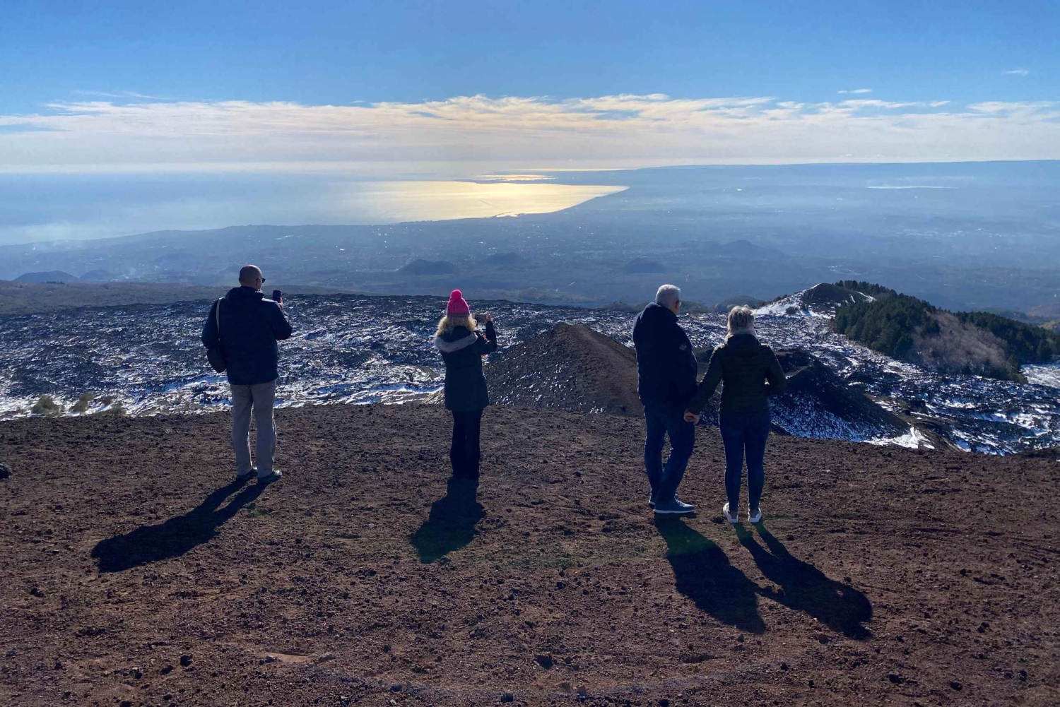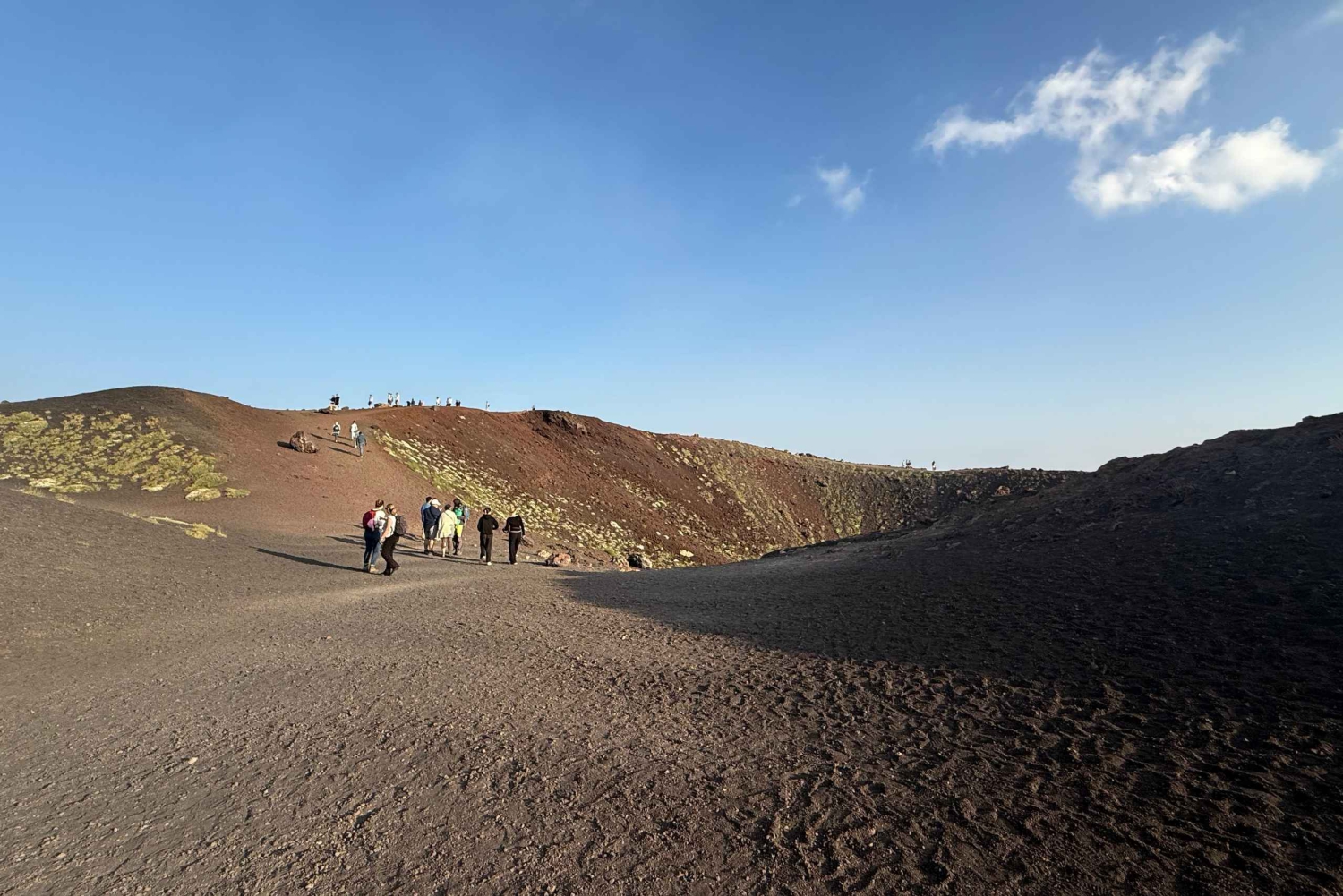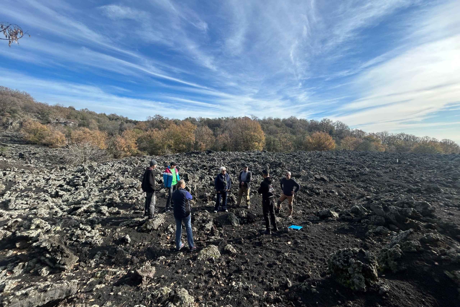 Etter å ha valgt møtested, kjører du med våre klimatiserte kjøretøy (jeep eller minibuss) til Etna for å starte turen. Underveis, som tar deg til en høyde på 2000 meter, vil din profesjonelle guide fortelle deg om vulkanens historie og forklare dens unike natur. Du vil vandre langs stier langt fra turistområdene for å beundre floraen og faunaen borte fra folkemengdene. Ulike aspekter ved vulkanen vil bli fremhevet, som dens natur og ressurser, de fantastiske landskapene og de enorme lavastrømmene som har formet territoriet og ødelagt bygninger og veier. Du vil besøke et område med gamle eksplosive aktiviteter som Hornitos eller Lava Flow Caves (du vil få utdelt hjelmer og lommelykter). Du blir ført til et utsiktspunkt for å beundre utsikten over Valle del Bove, den viktigste dalen på østsiden av vulkanen, kjent for sin lavørken. Før du returnerer, får du også muligheten til å smake på typiske produkter fra Zafferana Etnea-området.