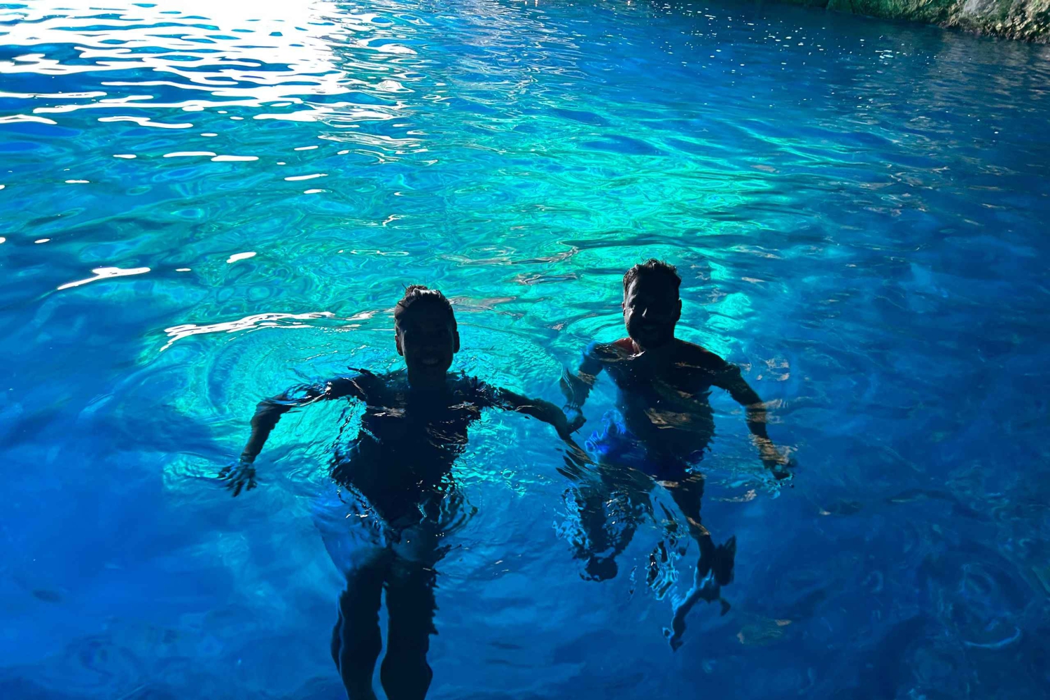 Båttur: Rundtur rundt øya i gummibåt med besøk i grotter og snorkling.