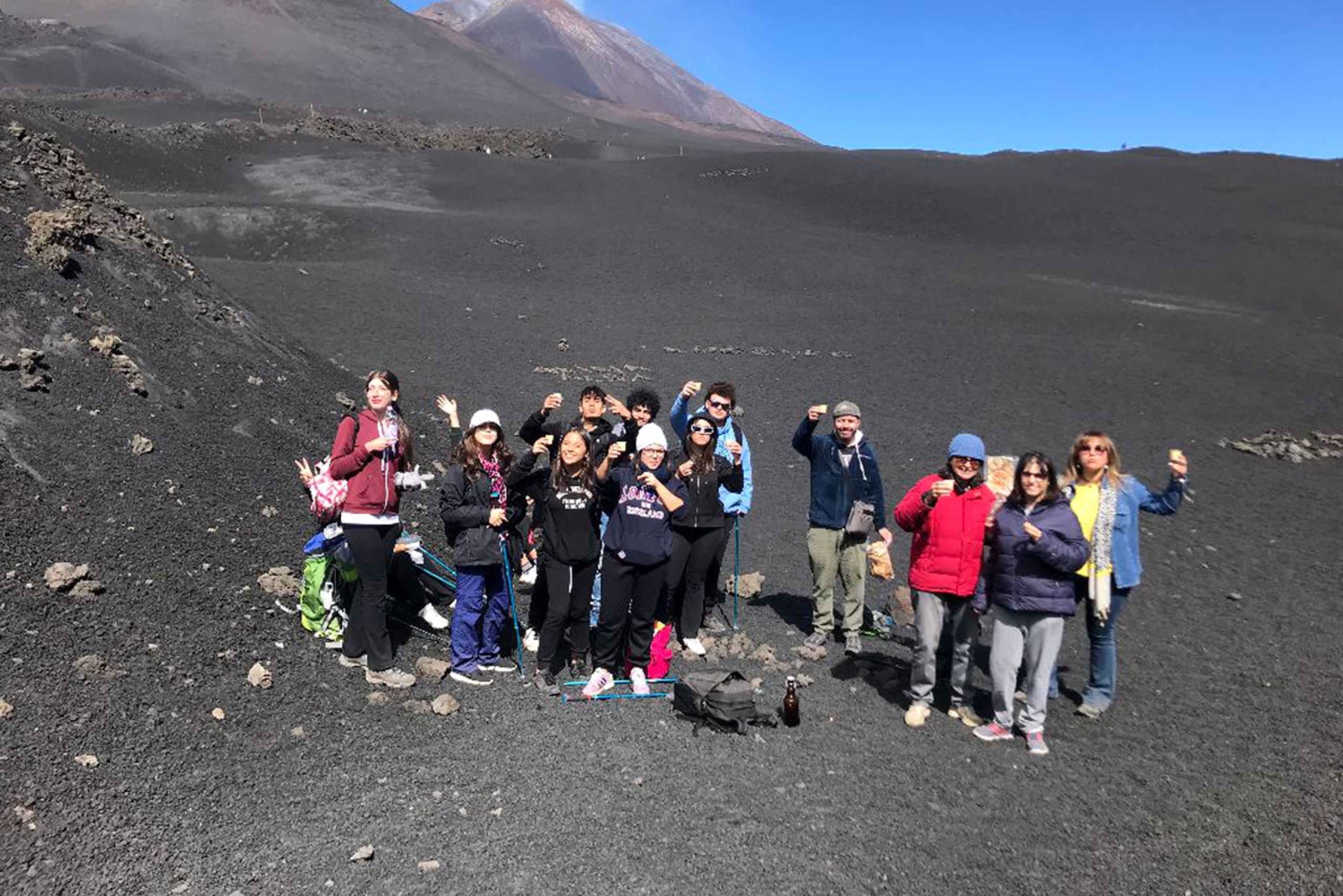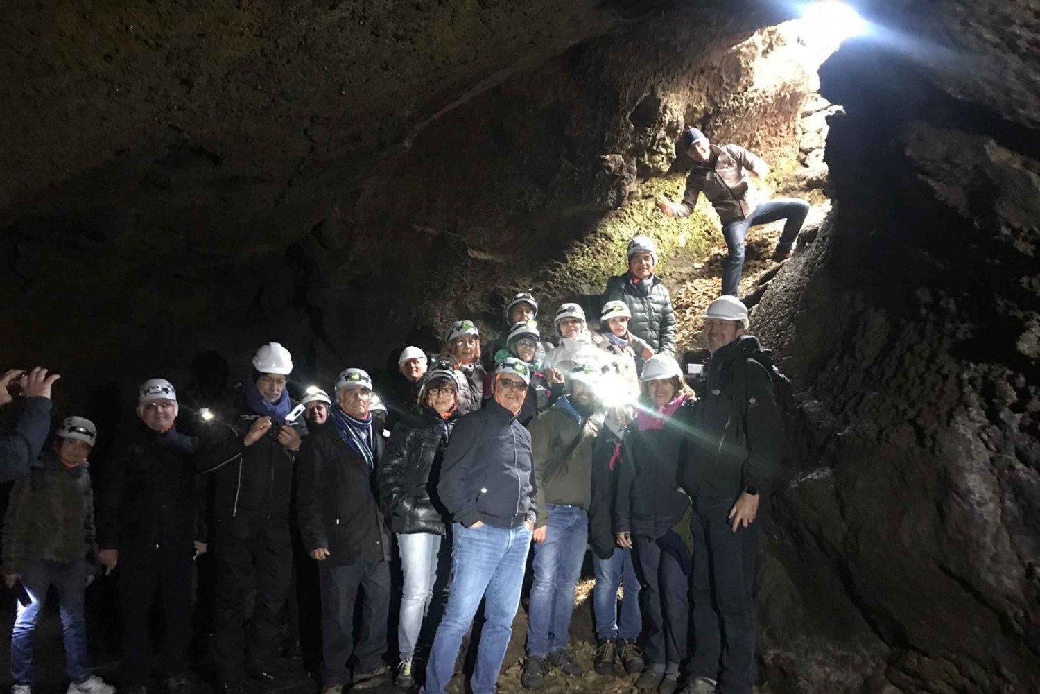 Utstyr for å gå inn i en vulkansk hule Turutstyr Snacks og vann Smaking av typiske sicilianske produkter 4wd turImportant Information