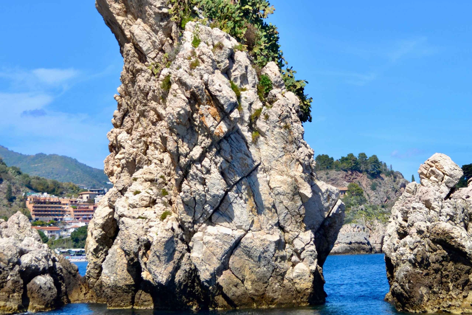 Glid over det turkise vannet i Taormina med denne båtturen. Avreise fra Velkommen ombord for en unik opplevelse langs kysten av Giardini Naxos og Taormina! Under båtturen får du muligheten til å snorkle i krystallklart vann og nyte en deilig aperitivo med prosecco og sicilianske søtsaker. Vi utforsker undervannslivet i det fantastiske naturreservatet Isola Bella, mens solnedgangen over Etna vil ta pusten fra deg. Vi besøker de fantastiske Grotta dell'Amore, Grotta Azzurra og Grotta dei Coralli, sammen med den fortryllende Baia delle Sirene og naturreservatet Isola Bella. Du får også muligheten til å beundre steder som er med i den berømte amerikanske TV-serien «White Lotus». Bli med oss på et uforglemmelig eventyr blant fantastiske landskap, krystallklart hav og de skjulte perlene på den sicilianske kysten. Bestill nå og la deg rive med av bølgene mens du utforsker det beste denne fantastiske regionen har å tilby! Møtested: https://maps.app.goo.gl/YEm2XsdF8wAWqzDh7?g_st=com.google.maps.preview.copyIncludes