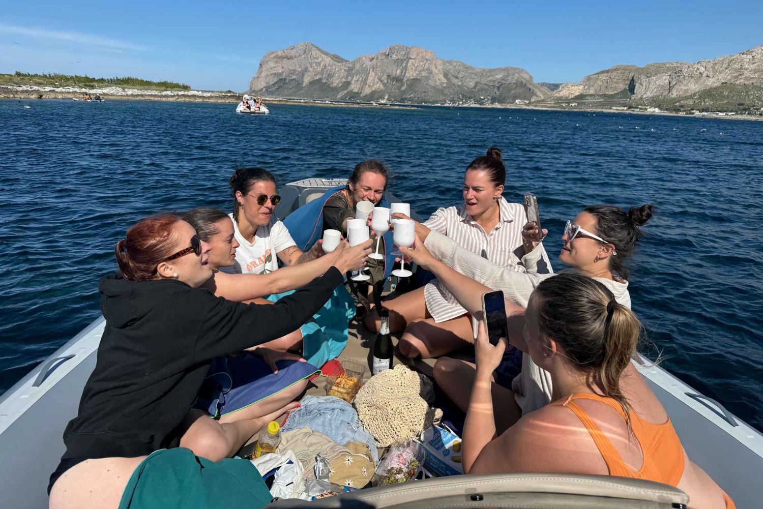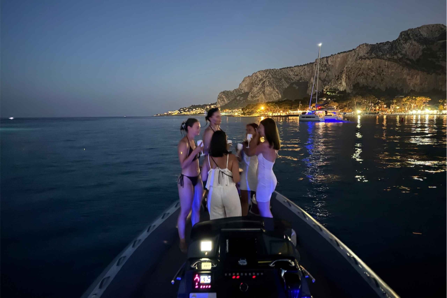 Oppdag den praktfulle kystlinjen rundt Palermo med denne båtturen på 4–5 timer til Isola delle Femmine. Nyt noen stopp for bading og snorkling i det krystallklare vannet i Mondello-bukten, Kvinneøya og mer, nyt en aperitif om bord med snacks og drikke. Start turen fra Florio tunfiskfabrikk, ikke langt fra Arenella-stranden. Kjør langs kysten av Arenella og under Monte Pellegrino, til du når den svært berømte Mondello-stranden, som fortsatt er vert for det gamle badeanlegget i Mondello, et av de vakreste arkitektoniske verkene i Art Nouveau-stil i Europa, født i begynnelsen av det tjuende århundre. Stopp i Mondello-bukten i omtrent en time, hvor du kan bade og snorkle i det veldig klare vannet. Deretter går turen videre til naturreservatet Capo Gallo, som er svært viktig for det biologiske mangfoldet. Beundre et imponerende nes som det står et bourbonsk fyr på. Etter å ha passert Capo Gallo, bunkeren og fyrtårnet, passerer vi foran Sferracavallo og når Kvinneøya, hvor du stopper for en ny svømmetur på omtrent en time. Dette er et stoppested for trekkfugler og like rikt på undervannsnatur. På dette stadiet kan du nyte en aperitif med en drink ledsaget av noen salte snacks og mer. Deretter returnerer vi til startpunktet. Fra midten av september vil tidsplanene for turene bli justert på grunn av de kortere dagene, for å sikre våre kunder en best mulig opplevelse. Turen finner sted én gang om dagen, med en total varighet på fem timer, fra kl. 10.00 til kl. 15.00, og vi legger til ett stopp til ved Capo Gallo-stranden, et fortryllende sted hvor havet viser nyanser fra turkis til smaragdgrønn. !!!OBS, les nøye!!! * Transportmiddelet for denne aktiviteten er en RIB (Rigid Inflatable Boat), kjent for å være praktisk talt usynkbar takket være den luftfylte strukturen. RIB-er er mer komfortable og stabile enn tradisjonelle båter, og tilbyr også overlegen sikkerhet. * Vi vil informere våre verdsatte kunder om at du må ankomme 20 minutter før planlagt avreisetid med ID-kort eller pass for å sikre effektiv service for alle deltakere. * Ved forsinkelse av én eller flere deltakere, kontakter vi kunden via telefon eller WhatsApp for å få ytterligere informasjon. Vær oppmerksom på at vi, for å garantere den nåværende kunden, venter opptil 10 minutter etter avreisetiden, hvoretter eventuelle fraværende kunder blir merket som uteblivelser. * Ved plutselig forverring av værforholdene under turen, dersom kapteinen eller personalet bestemmer seg for å returnere til utgangspunktet for å sikre passasjerenes sikkerhet, vil det ikke bli utstedt refusjon. Dette er fordi forverrede værforhold er utenfor vår kontroll og noen ganger uforutsigbare.Includes
