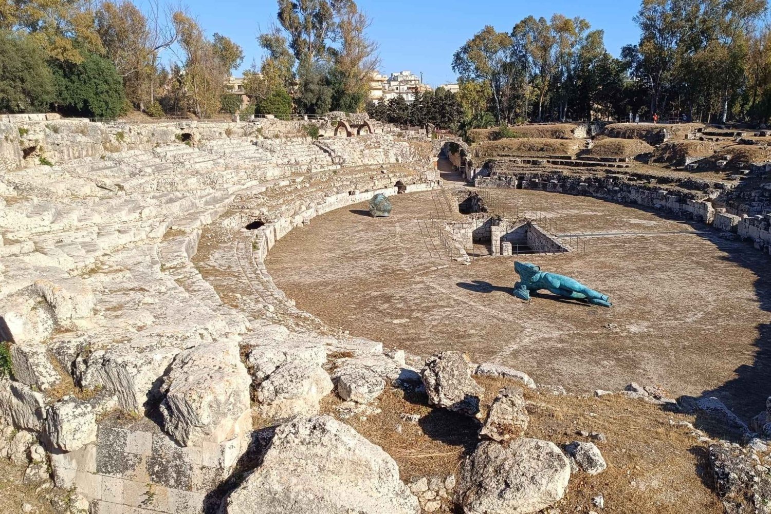 Møt din lisensierte guide ved inngangen til det arkeologiske parken i Neapolis og besøk de mest fantastiske antikke greske og romerske monumentene i Syracuse. Oppdag historien, skikkene og tradisjonene til dette antikke greske stedet, hovedformålet med det greske teatret og det romerske amfiteateret med din kunnskapsrike guide. Start turen med å besøke det største greske alteret kjent fra antikken, bygget av tyrannen av Siracusa Hieron II for offentlige ofringer på Zeus Eleutherios-festen. Mens du går, kan du gå inn i det vakre naturområdet med greske steinbrudd kalt «Latomie del Paradiso» på grunn av det frodige grøntområdet. Fortsett turen inn i den legendariske hulen «Dionysius' øre», kjent for sin spesielle form og ekkoeffekt. Oppdag det antikke greske teatret ved å klatre opp (svært mild skråning) til toppen av Temenite-åsen, og nyt den fantastiske utsikten fra dette magiske, originale steinteatret. Oppdag den dype historiske betydningen av det greske teatret og de livlige klassiske tragediene fra Aiskhylos til Homer. Beundre Nymphaeum-fontenen og nyt den fantastiske utsikten over Grand Harbour. Avslutt turen med å lytte til mine rørende historier om gladiatorene og deres liv i det romerske amfiteateret.Includes