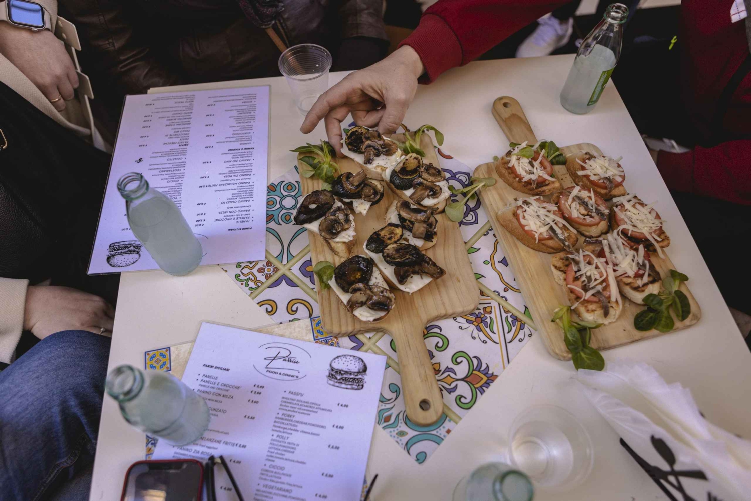 Vem com fome, sai apaixonado pela comida siciliana! Vamos levar-te pelo coração de Palermo, onde cada dentada conta uma história de séculos. Vamos guiar-te por La Kalsa, um dos bairros mais antigos da cidade, e apresentar-te aos artesãos locais que preservam os autênticos sabores da Sicília. Desfruta das comidas de rua icónicas da cidade, como arancine e caponata, com um vinho siciliano. Já te perguntaste como fazer uma autêntica pizza siciliana? Vais aprender com um mestre pizzaiolo num deslumbrante palácio do século V. E nenhuma experiência em Palermo estaria completa sem uma paragem no 'Bar Costa' para um cannolo, um dos melhores da cidade. Além disso, desfruta de uma seleção dos melhores vinhos e cocktails sicilianos.Includes