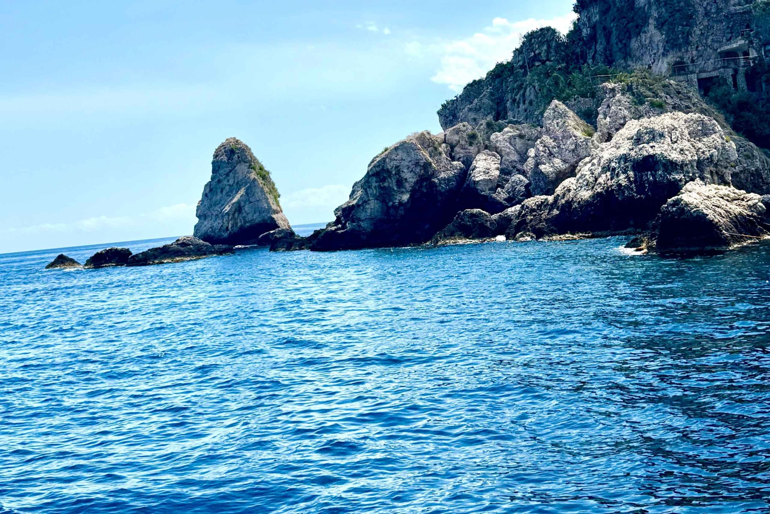 Taormina: passeio de barco cultural saindo de Isola Bella - Gruta Azul