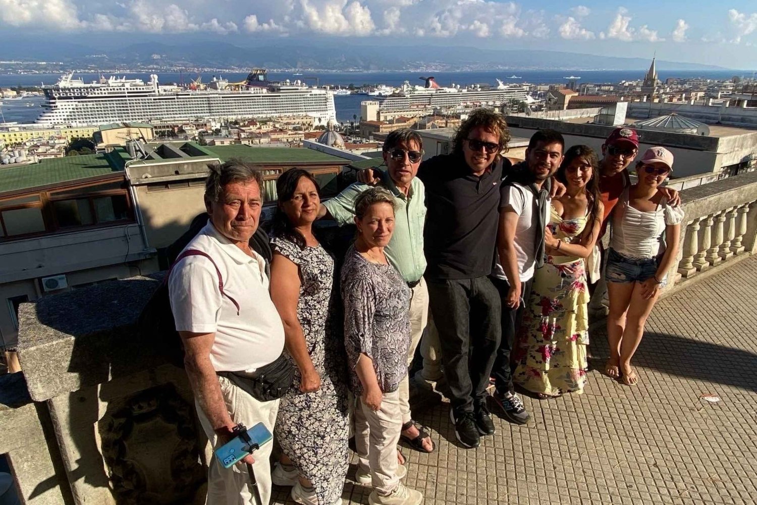 Экскурсия начинается с пирса в порту Мессины или в другой согласованной точке. Время встречи предоставляется клиентами. После краткой презентации Мессины по ее главным улицам мы добираемся до шоссе Мессина/Катания. Достигнув Джарре, мы оставляем равнины позади и начинаем подъем через деревни к склонам Этны, Санта-Венерины и Дзаффераны. Мы сделаем остановку в местной компании, занимающейся пчеловодством, где клиенты могут насладиться вкусом меда и типичных продуктов Сицилии, таких как масло, оливки и знаменитый лимончелло, приготовленный из лимонов этой прекрасной земли. Он продолжает подниматься до горы Этна, и на этом подъеме можно полюбоваться видами на побережье Катании, пока вы не достигнете кратера Ай Сильвестри, желанного туристами со всего мира, чтобы полюбоваться захватывающим видом и понаблюдать за последними отливками лавы прошлых лет. Затем мы идем в Таормину, где мы сначала фокусируемся на балконе, с которого вы можете полюбоваться видом на скалу Таормины со знаменитым островом Изола Белла и сделать очень красивые фотографии. После того, как вы приедете в деревню Таормина и сопроводите клиентов к пешеходному входу, который ведет в сердце Таормины. Вы проходите знаменитую Корсо Умберто (древнеримская дорога Валерия), достигая основных достопримечательностей: греческого театра, магазинов, вкусных ресторанов и памятников после 1 или 2 часов, проведенных по усмотрению клиента. Он вернулся в Мессину, сделав короткую остановку на смотровой площадке Мессины, где стоит памятник / мавзолей с бронзовыми статуями (святилище Христа Царя), а затем мы останавливаемся в соборе Мессины, где находятся самые большие астрономические и астрологические часы в мире.Includes