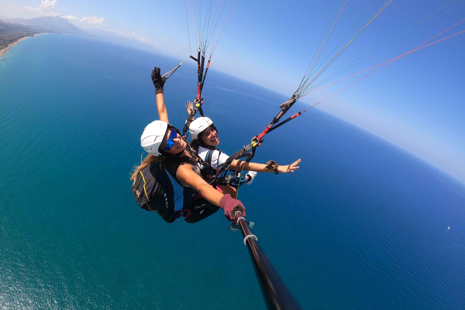Откройте для себя радость полета на параплане над живописной Сицилией в этом туре из Летоянни. Испытайте острые ощущения от полета над захватывающим дух побережьем Таормины. Летайте безопасно с исправным оборудованием и квалифицированным инструктором. Возьмите домой видео и фотографии GoPro из своего тура. Встретьтесь с гидом в офисе поставщика услуг в Летоянни и отдохните во время трансфера к месту взлета. Послушайте, как ваш гид делится с вами информацией о безопасности. Пристегните свое высококачественное защитное снаряжение и послушайте, как ваш гид расскажет вам, как взлететь. Почувствуйте волнение, паря высоко над землей и любуясь фантастическими видами волн, бьющихся о скалистые берега. Пока вы наслаждаетесь видами, ваш инструктор снимает видео и фотографии на GoPro10 с палки для селфи. Завершите свой тур мягкой посадкой на пляж и трансфером обратно к месту встречи в Летоянни. !!! Имейте в виду, что время, которое вы выбираете, является всего лишь предложением для поставщика услуг. Точное время полета вам сообщит ваш пилот в зависимости от погодных условий и доступности. !!!Includes
