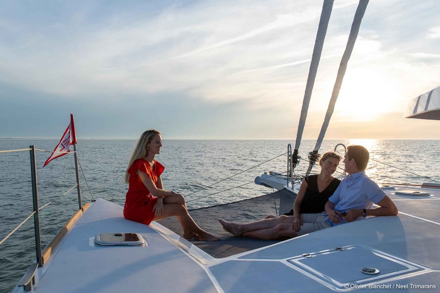 Welcome aboard FLO, our NEEL 47 trimaran, where luxury meets the lightness of Mediterranean living.