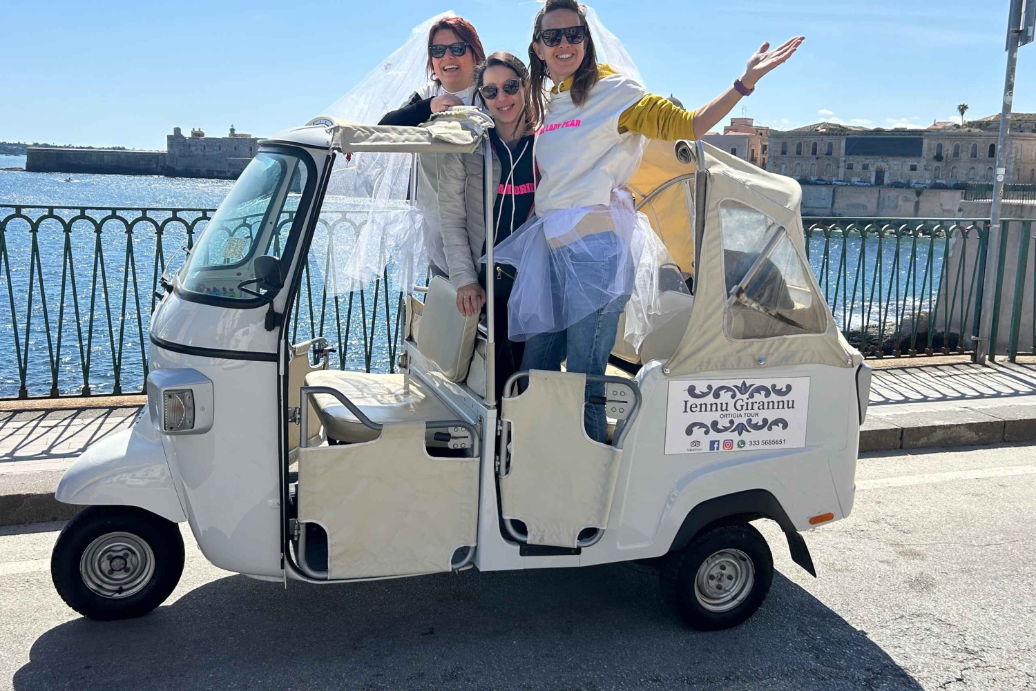 Экскурсия. 1 час в Ортигии: остановка на площади Дуомо, остановка у источника Аретуза, остановка у замка Маниаче, храм Аполлона, площадь Архимеда, еврейский квартал. Мы расскажем вам всю историю Ортигии. Экскурсия 2 часа: мы посетим нашу великолепную Сиракузу и покажем вам самые красивые и важные места! Мы посетим церковь Мадонны делле Лакричи, где внутри находится маленькая статуя Мадонны, которая плакала слезами, и церковь на площади Санта-Лючия, где можно увидеть картину Караваджо, изображающую погребение святой Лючии, а также посетим катакомбы Сиракуз и совершим обход археологической зоны.Includes