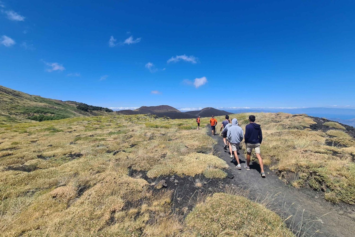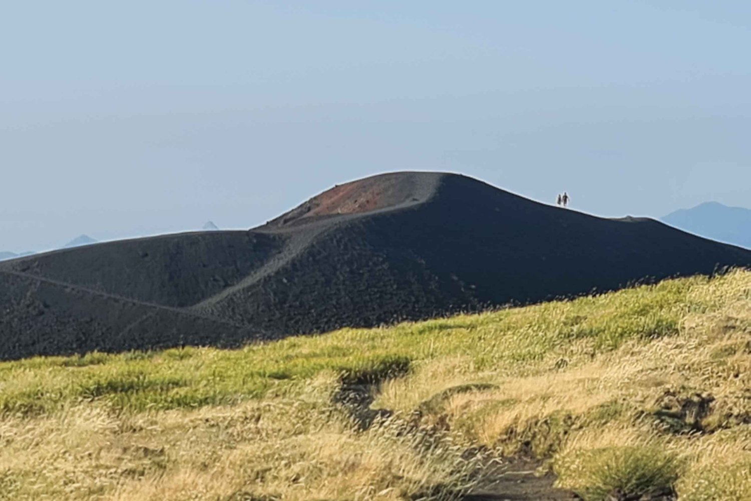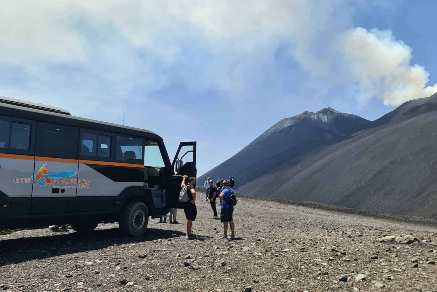 Turen börjar vid 'Piano Provenzana' och följer en bergsstig på 2900 meters höjd. Vi färdas med terrängfordon och når en hög bergssluttning med magnifik utsikt över lava och vulkanisk sand längs den spricka som skapades vid utbrottet 2002. Här kommer vi att gå på kanten av kratrarna från 2002 och se hur en vulkan skapas. Här kommer vi att identifiera mineraler som kännetecknas av färger som sträcker sig från gult till rött till blått. Härifrån har vi en fantastisk utsikt över Taorminabukten, Naxosbukten, Messinasundet och Kalabrien samt bergskedjan Nebrodi till Rocca Novara, där man kan njuta av de mest imponerande vyerna i världen, till synes månlandskap som skapats av flera laterala utbrott längs Etnas nordsida. Vi fortsätter vår utflykt med våra terrängfordon till en höjd av 2900 meter där den nordöstra kratern (där vulkanobservatoriet ligger) dominerar området. Från denna punkt börjar stigningen genom att gå på en stig omgiven av vulkanisk scoria och bomber. Den totala stigningen är 300 meter tills vi kommer fram till utsiktspunkten, på en höjd av 2900 meter. Där stannar vi för att beundra storheten, det unika och processerna i den vulkaniska miljön, förenat med spektaklet av utsikten som du kan njuta av från taket på Sicilien (sikten kan förändras beroende på väder eller vulkaniska förhållanden). Vid klart väder kan man se både 'Lion'- och 'Bove'-dalarna, majestätet i nordost och sydost. Turen avslutas med att vi åker tillbaka genom Piano delle Concazze och sedan ner till Piano Provenzana, som är ankomstplatsen för vår utflykt.Includes
