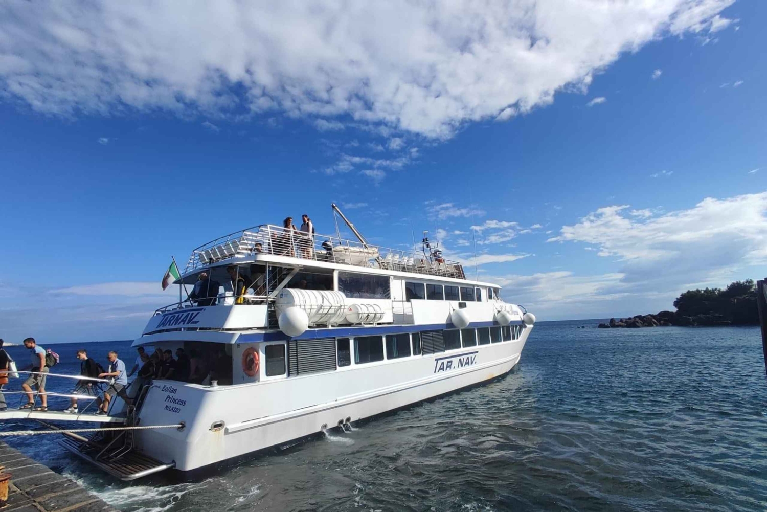 - Rederiet måste följa de förordningar som reglerar landstigningar på Eoliska öarna beroende på vulkanvarningar eller havsförhållanden. Denna tur genomförs oavsett väder.