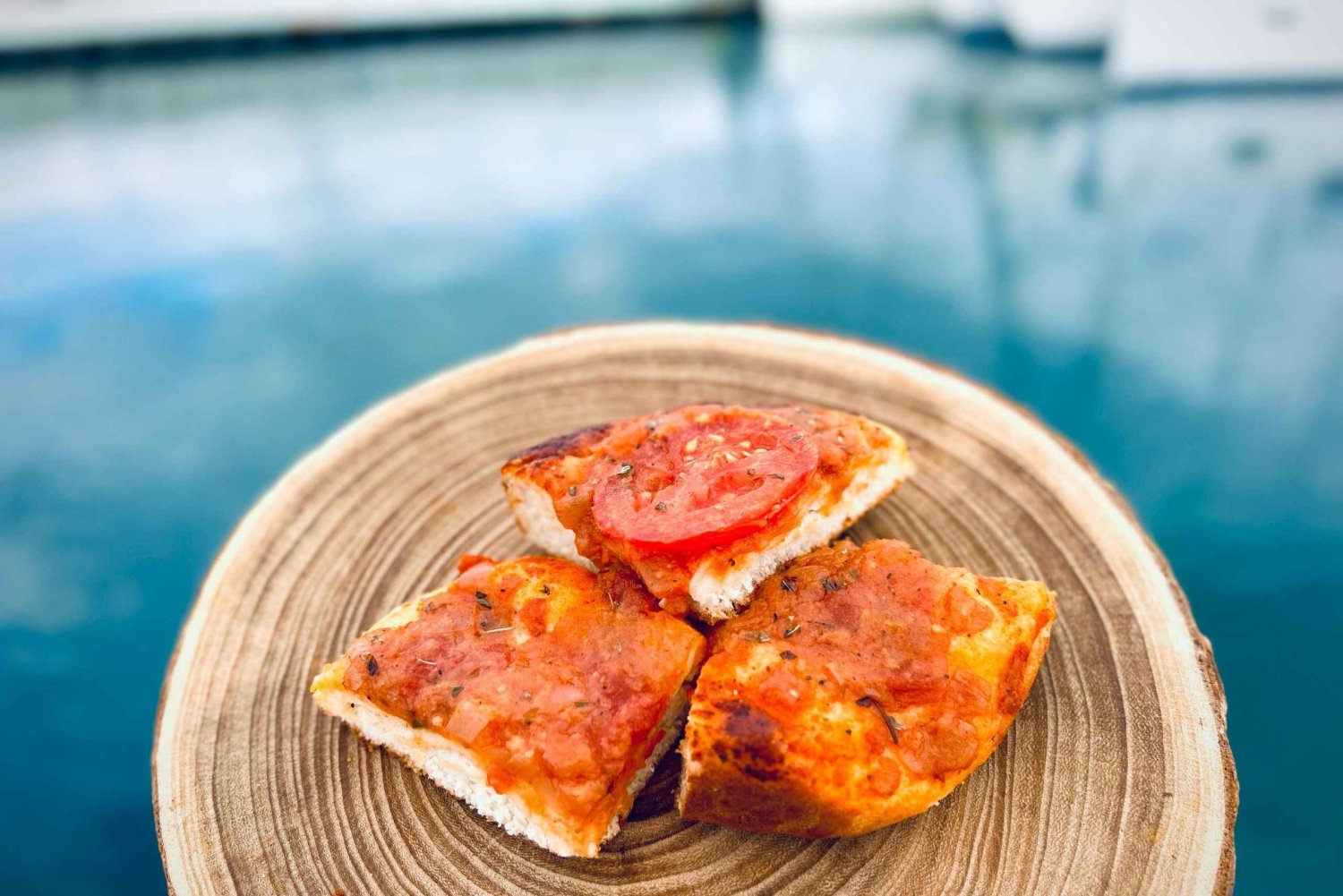 Turen varar i 4 timmar och erbjuder dig en unik upplevelse bland Palermos kristallklara vatten. Avgångar planeras dagligen från Trapezoidal Pier vid Marina Yachting i Palermo kl. 09.30 och 15.00. Efter avgång tar vi oss till den pittoreska Queen's Cave, där du kan snorkla eller ta fantastiska foton. Därefter seglar vi mot den berömda Mondello-stranden, där du kan njuta av vår berömda sicilianska aperitif. Vuxna kan njuta av en Aperol Spritz, medan barnen kan njuta av Coca-Cola. Lokala läckerheter inkluderar sfincione, arancine, panelle, crocchè och den ikoniska sicilianska cannolo, nylagad ombord av vår kapten. Veganska och glutenfria alternativ finns tillgängliga på begäran, med minst 24 timmars varsel. I paketet ingår en riklig aperitif med Palermos gatumat, obegränsat med färskvatten, siciliansk cannoli och snorklingsutrustning som undervattensskotrar, nudlar och masker. En meny med valfria tillbehör, inklusive vin, öl, prosecco och andra drycker, finns också ombord. Stopp under turen kan variera beroende på havs- och vindförhållanden, vilket garanterar din säkerhet hela tiden. Avgångar garanteras med minst 3-4 deltagare. För maximal komfort kommer kaptenen att välja den lämpligaste båten: Lady Grace, med vintagestil och plats för 8 passagerare, eller Baloo, med modern design och plats för upp till 14 deltagare.Includes
